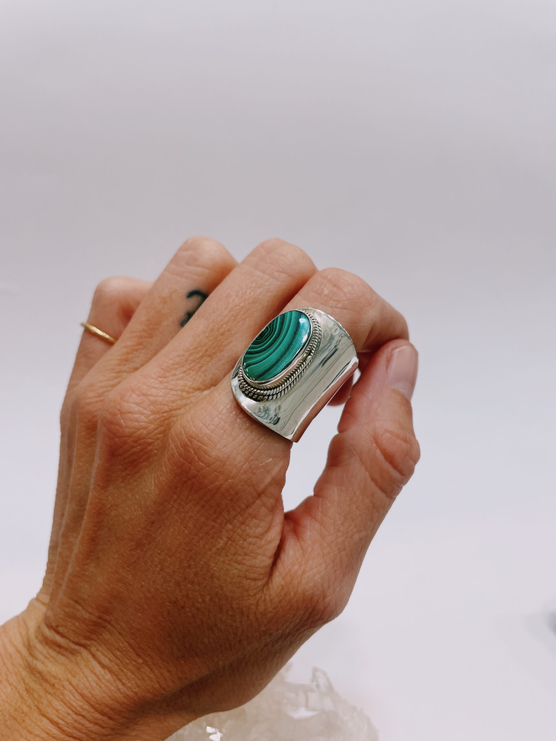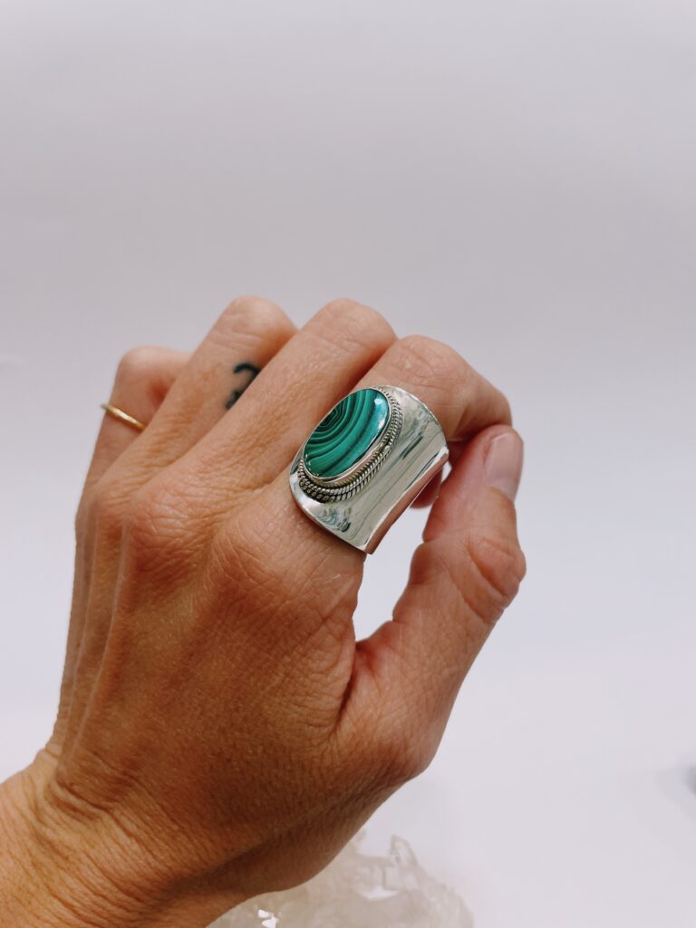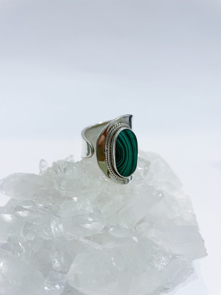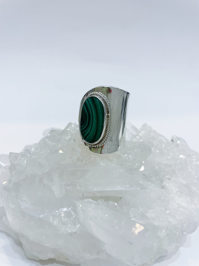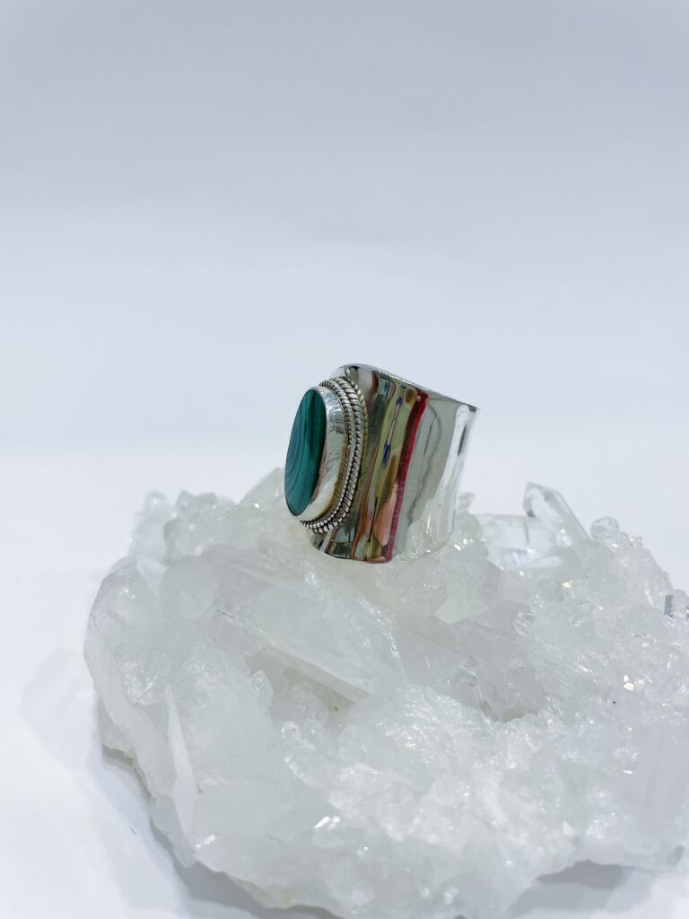 Anillo de Malaquita engarzado en Plata de Ley 925.