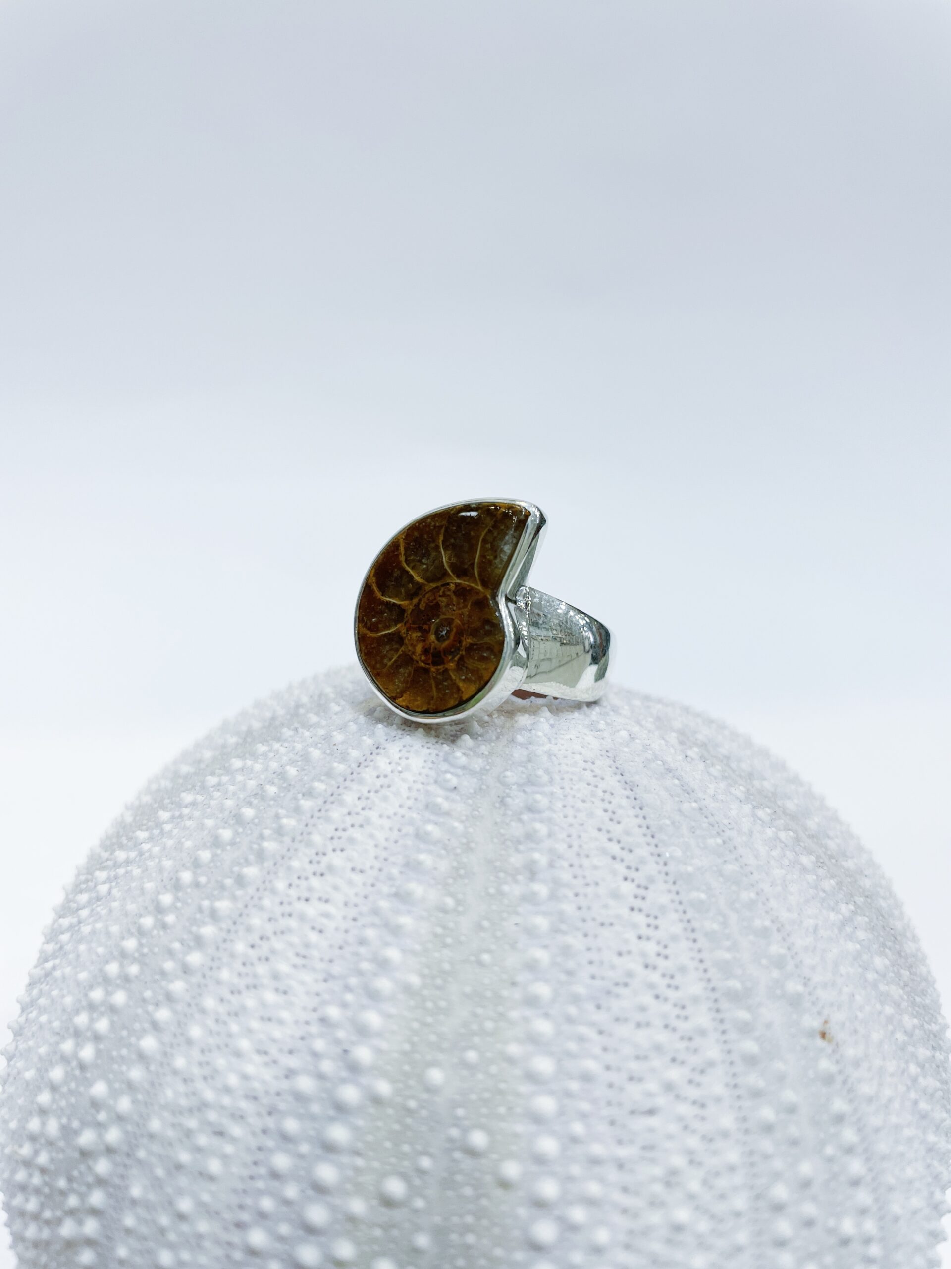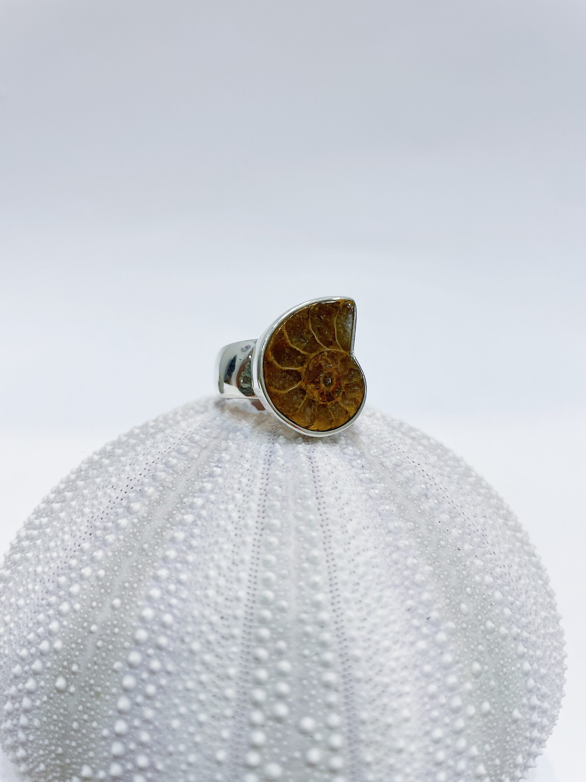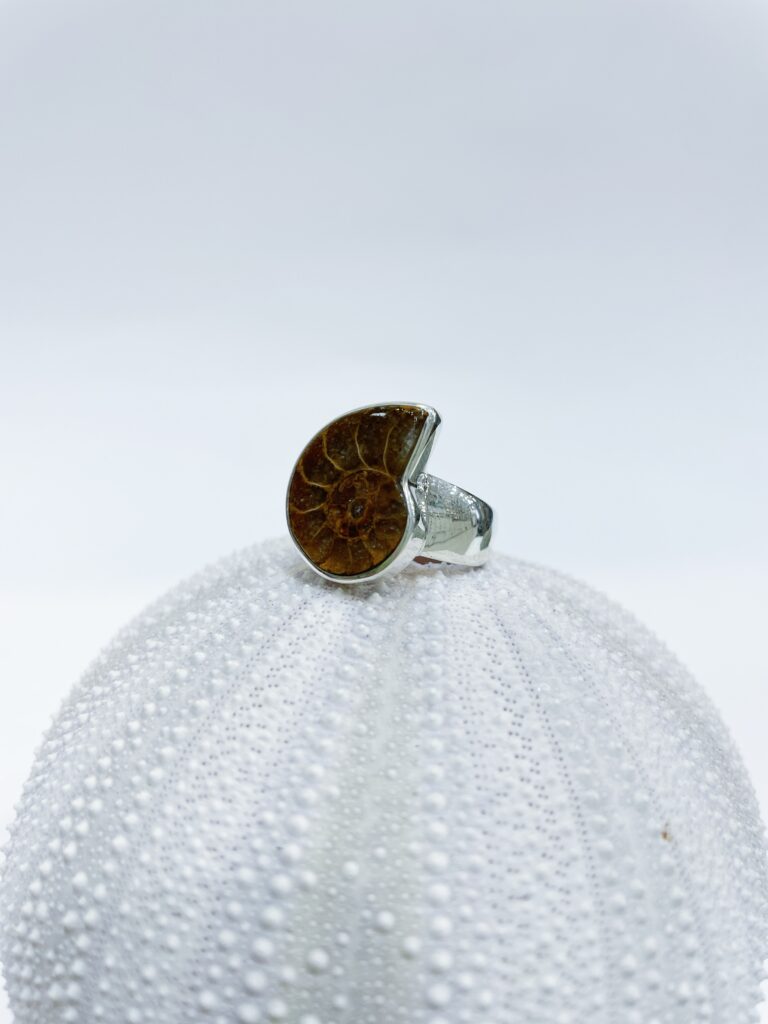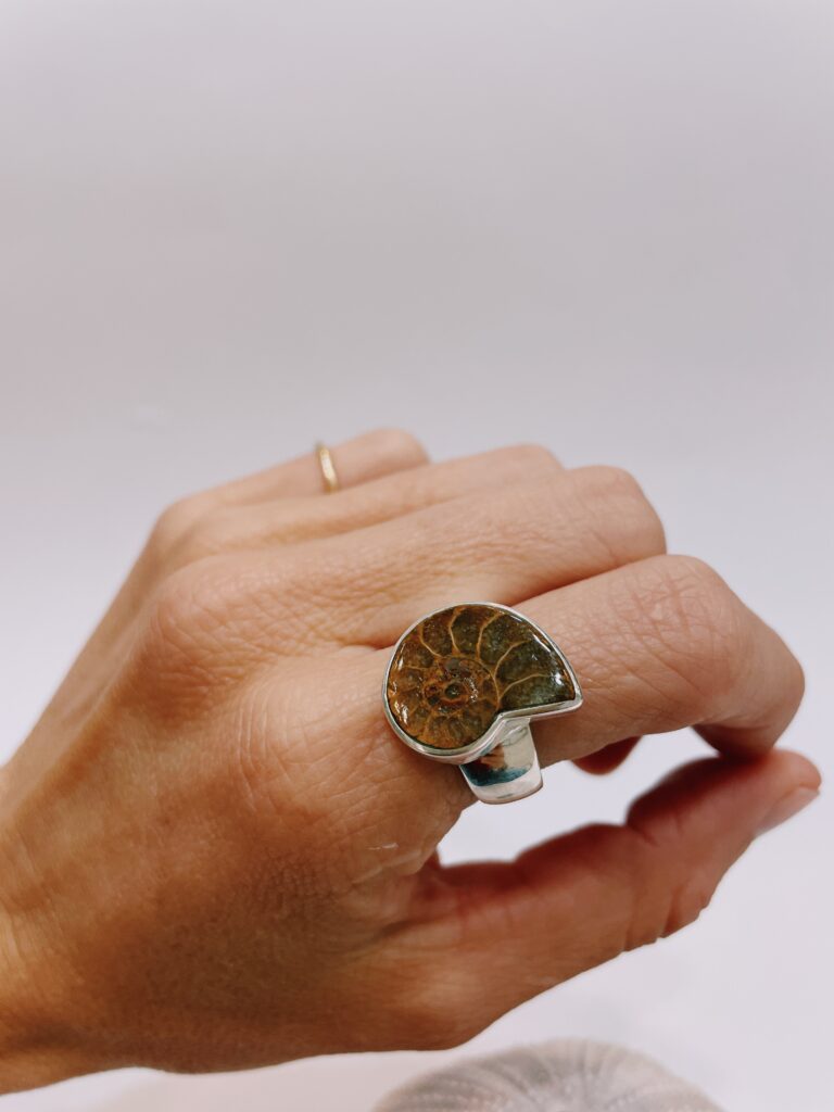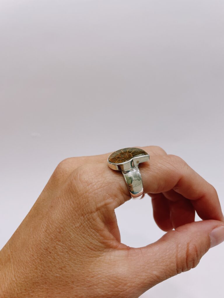 Anillo de ammonites natural pulido procedente de Madagascar engastado en Plata de Ley 925.