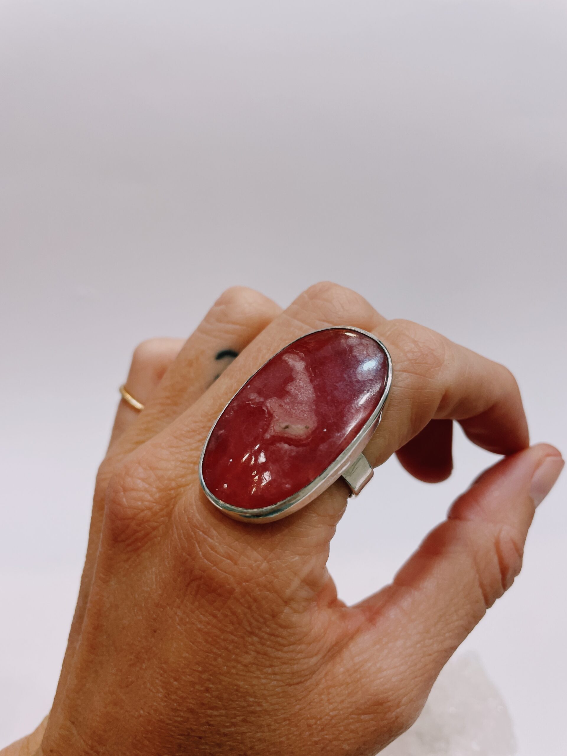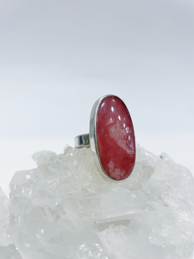 Anillo de Cobaltocalcita engastada en Plata de Ley 925. Adaptable a cualquier talla debido a su diseño abierto. A partir de talla 16 quedará abierto.