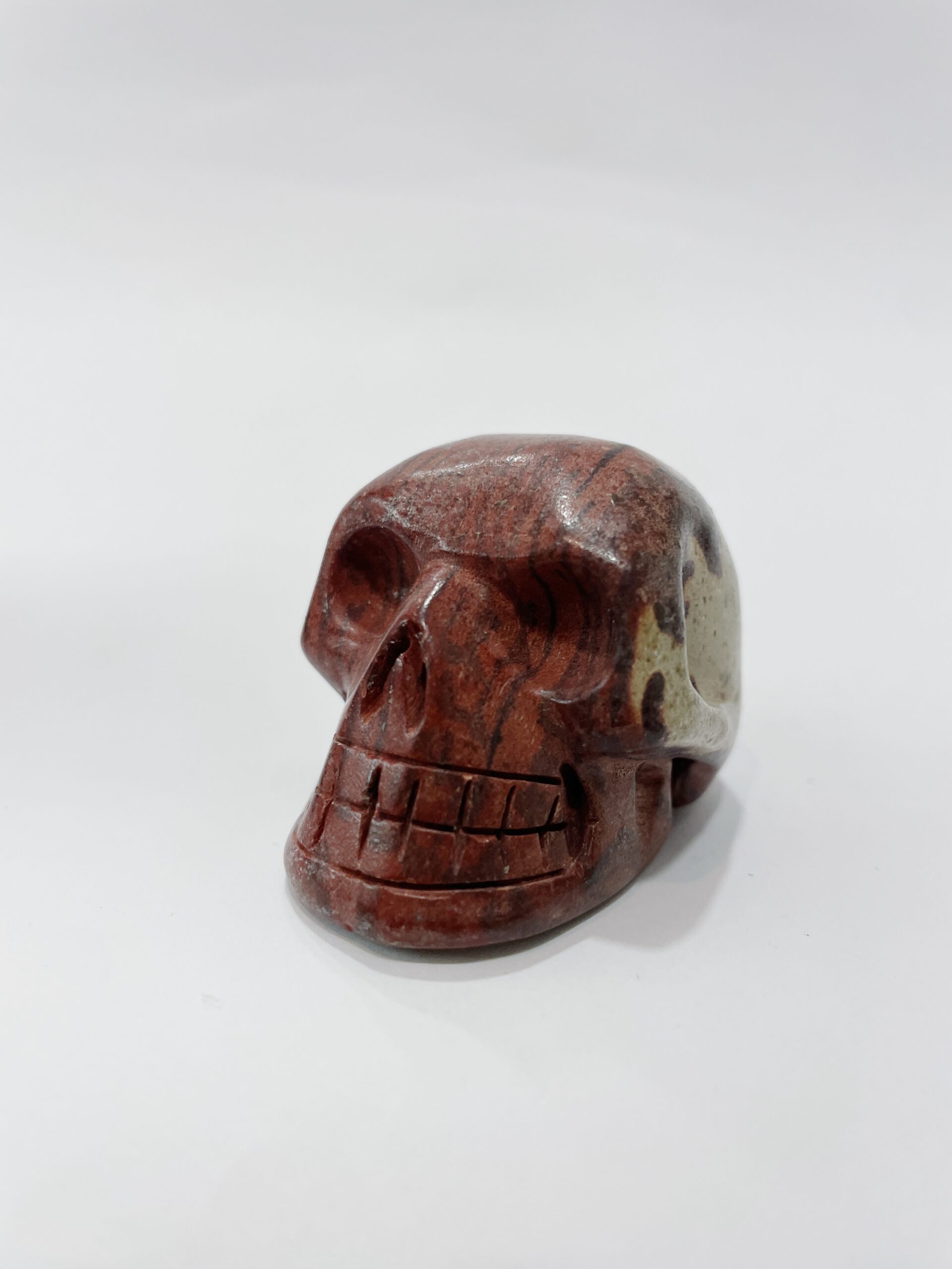 Calavera de jaspe natural tallada y pulida, procedente de China.