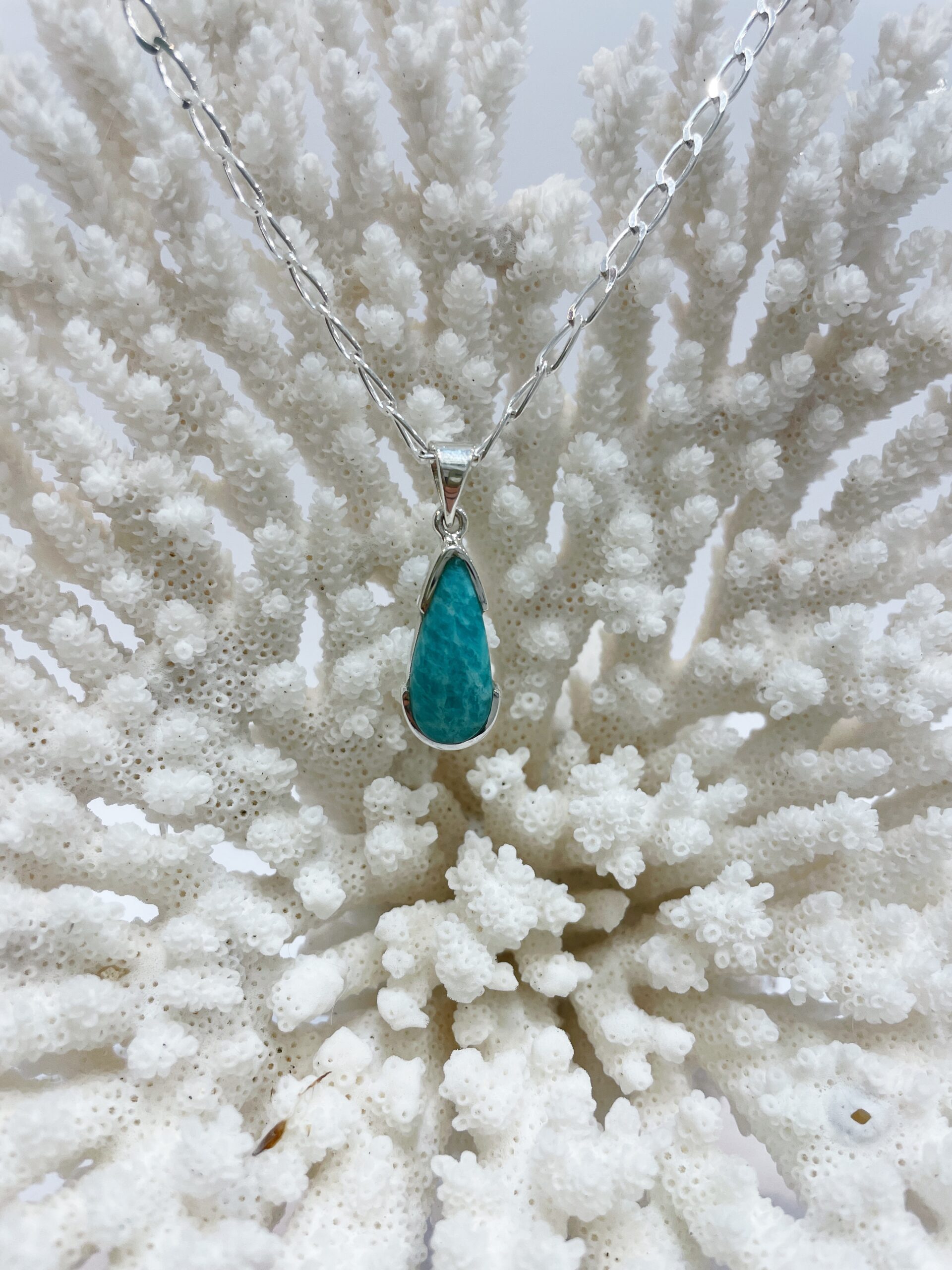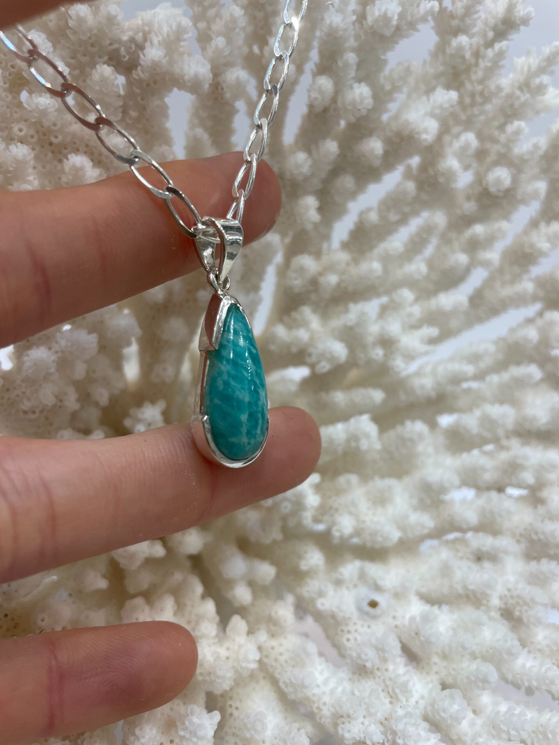 Colgante de amazonita natural engastada en plata de Ley 925.