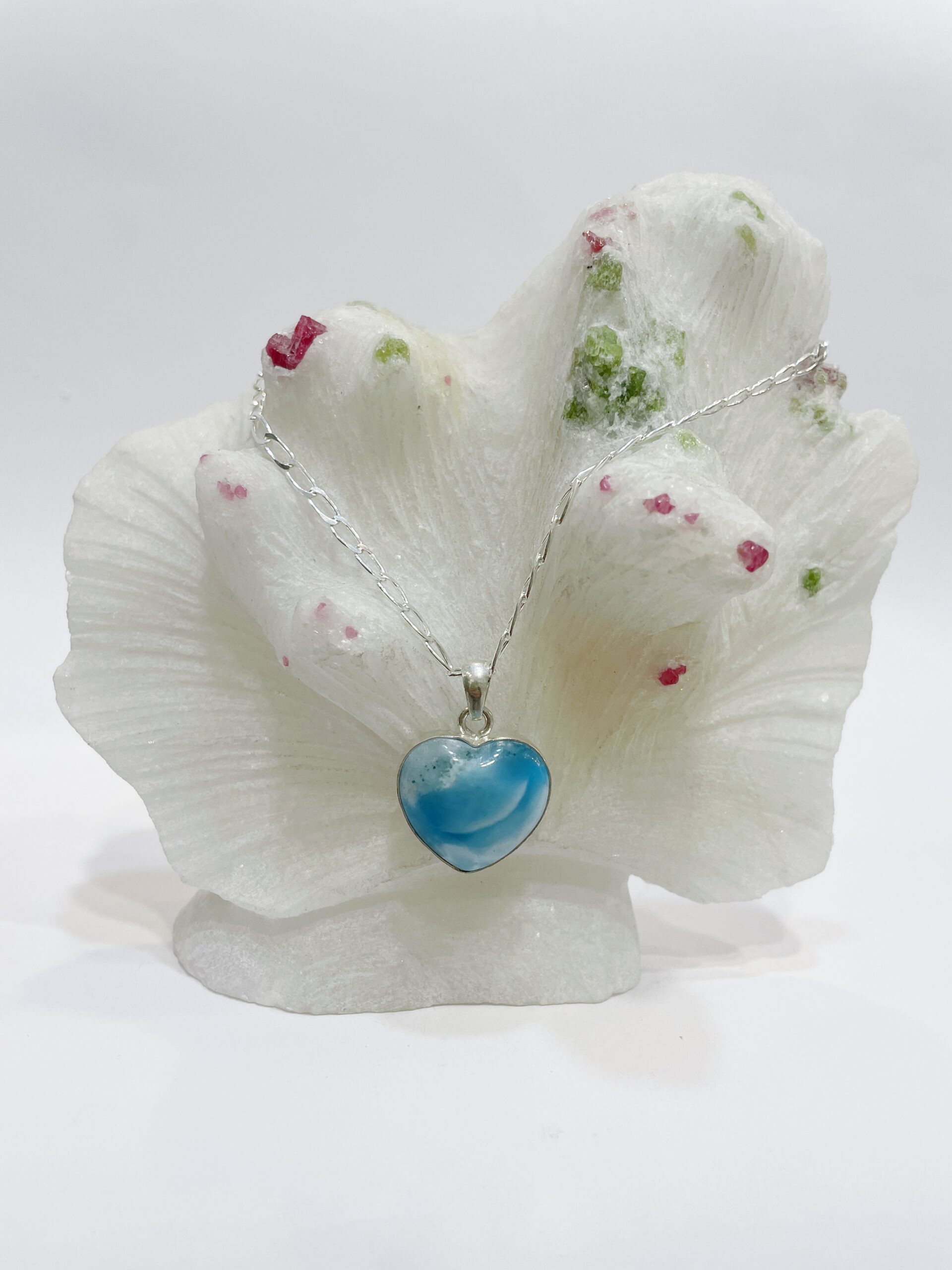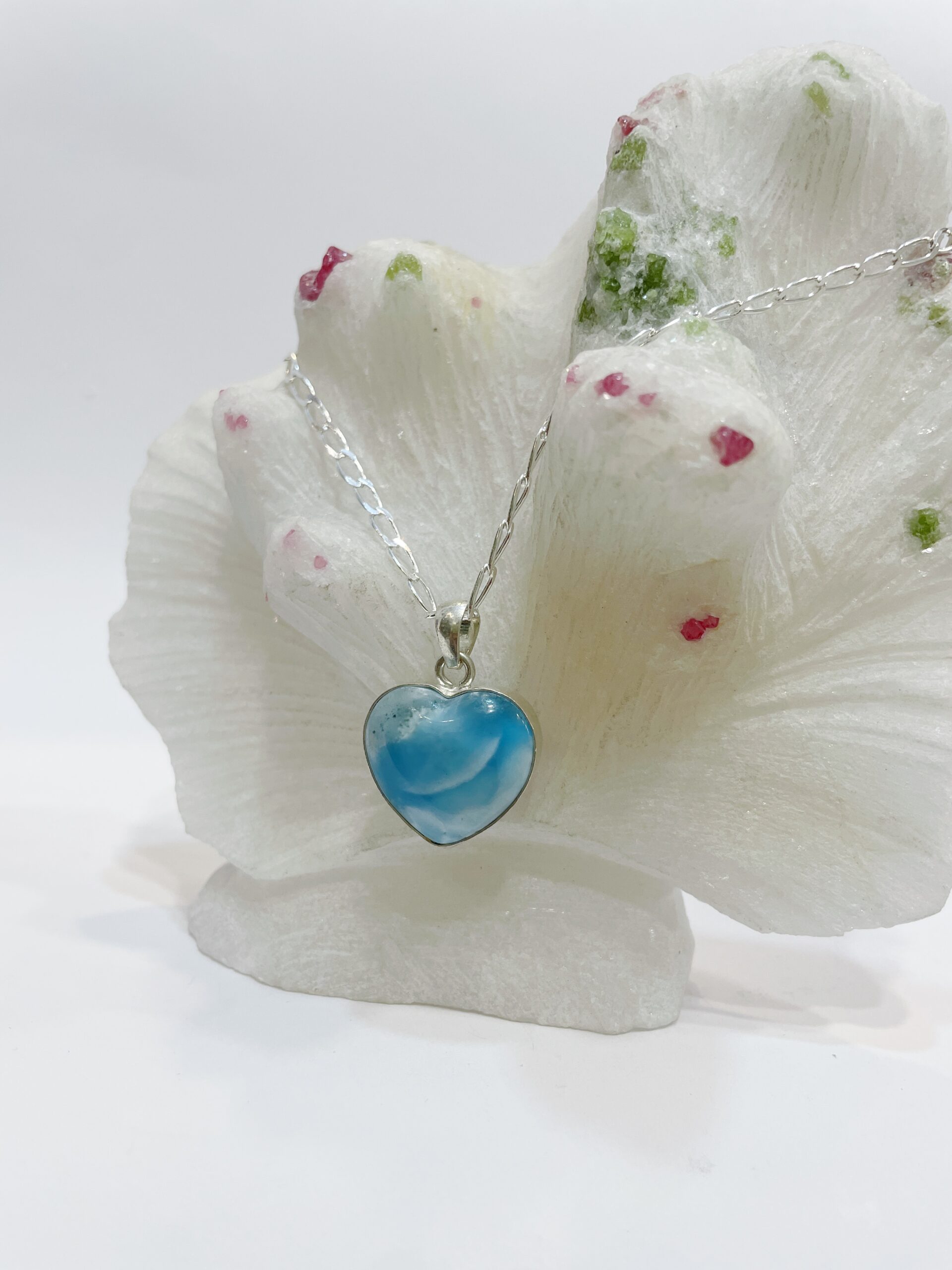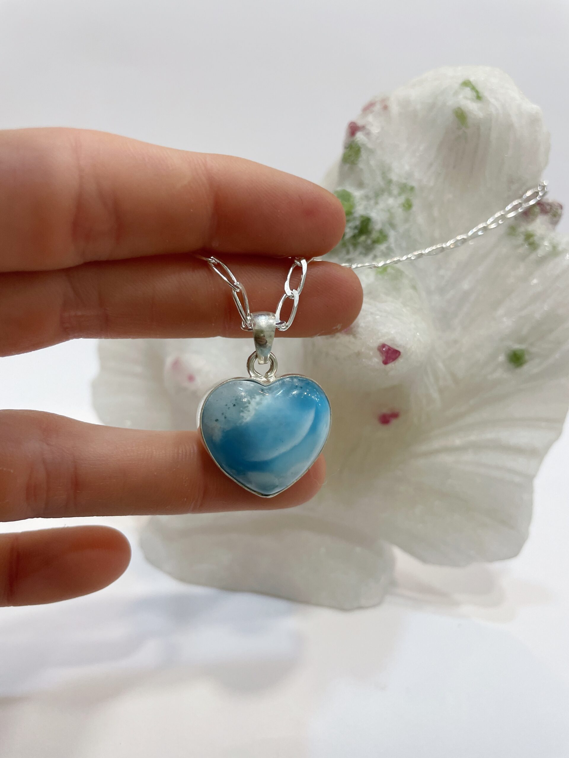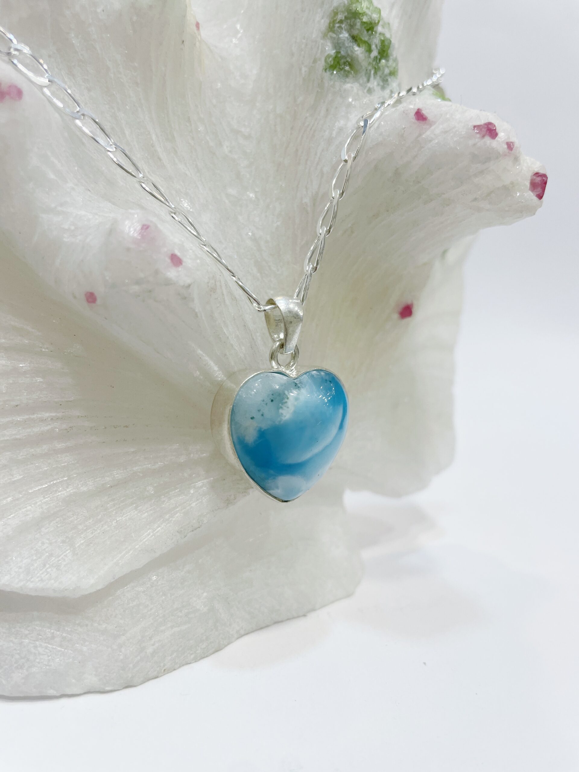 Colgante de Larimar sin Cadena (NO CHAIN). Lo entregamos con un cordón de algodón ya listo para colgártelo.