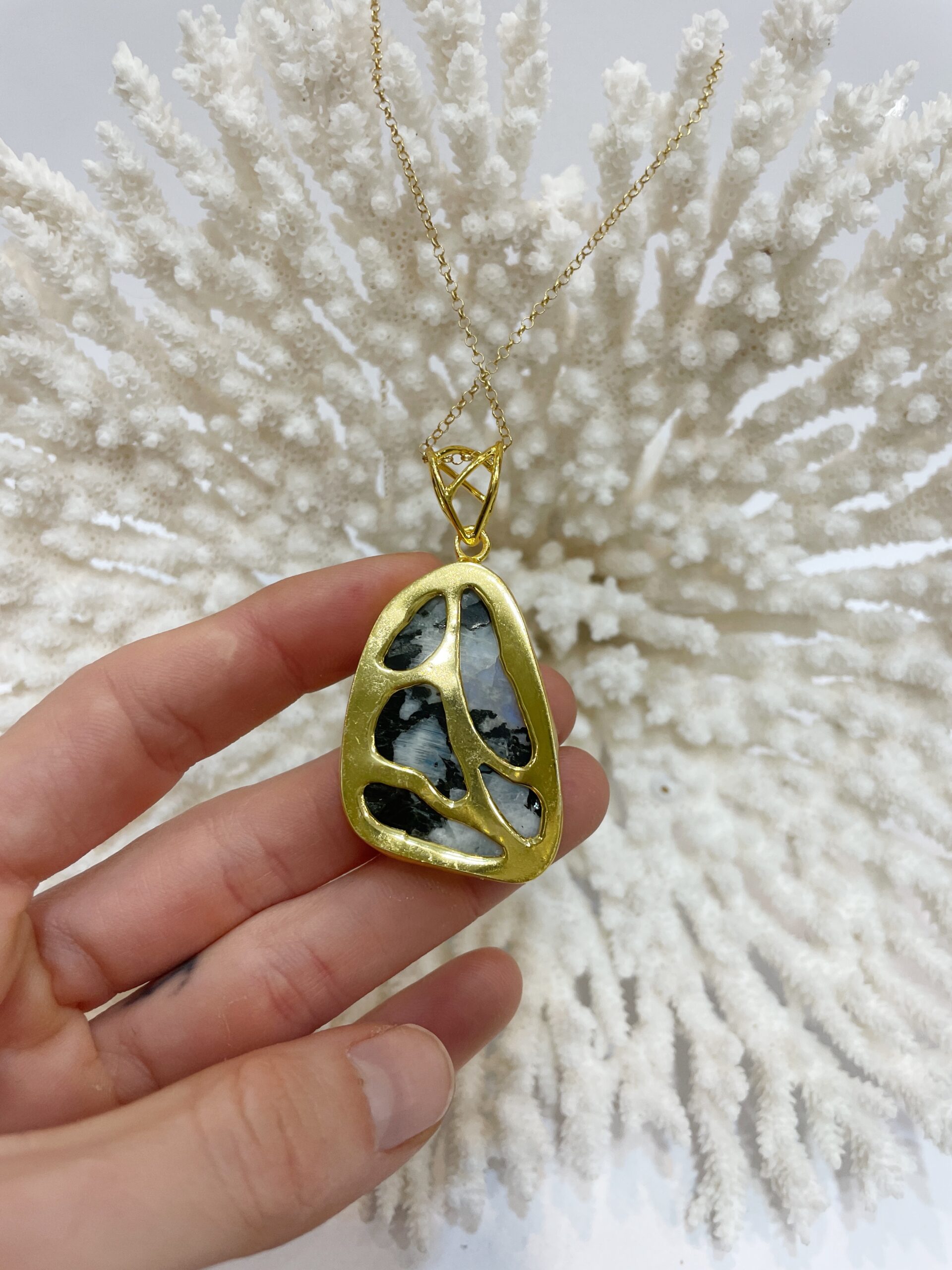 Colgante de Piedra Luna engastado en latón.