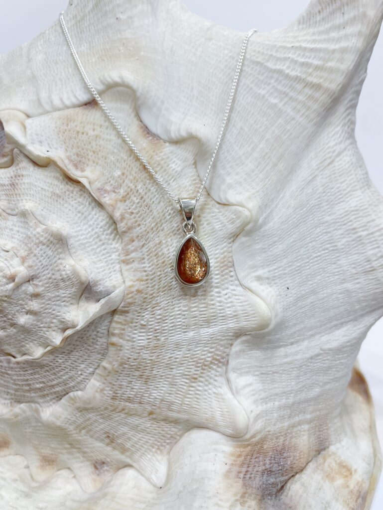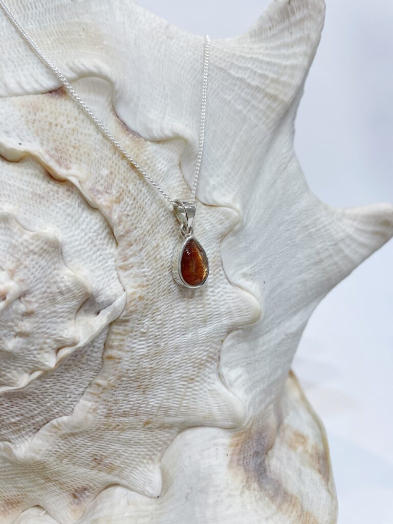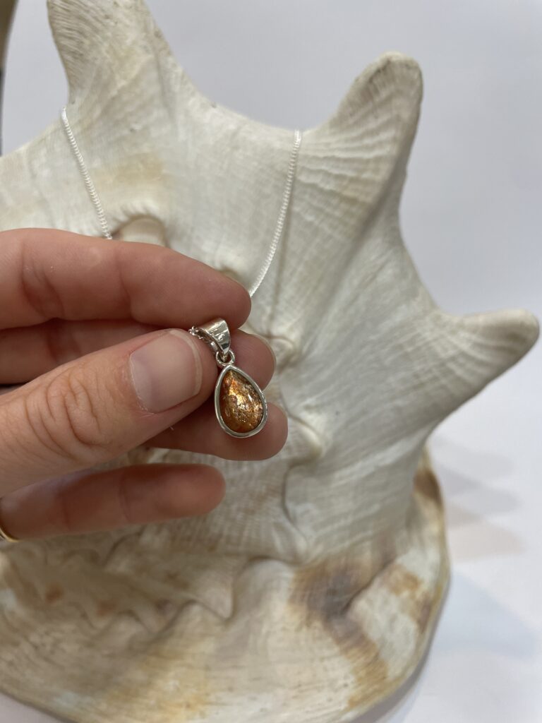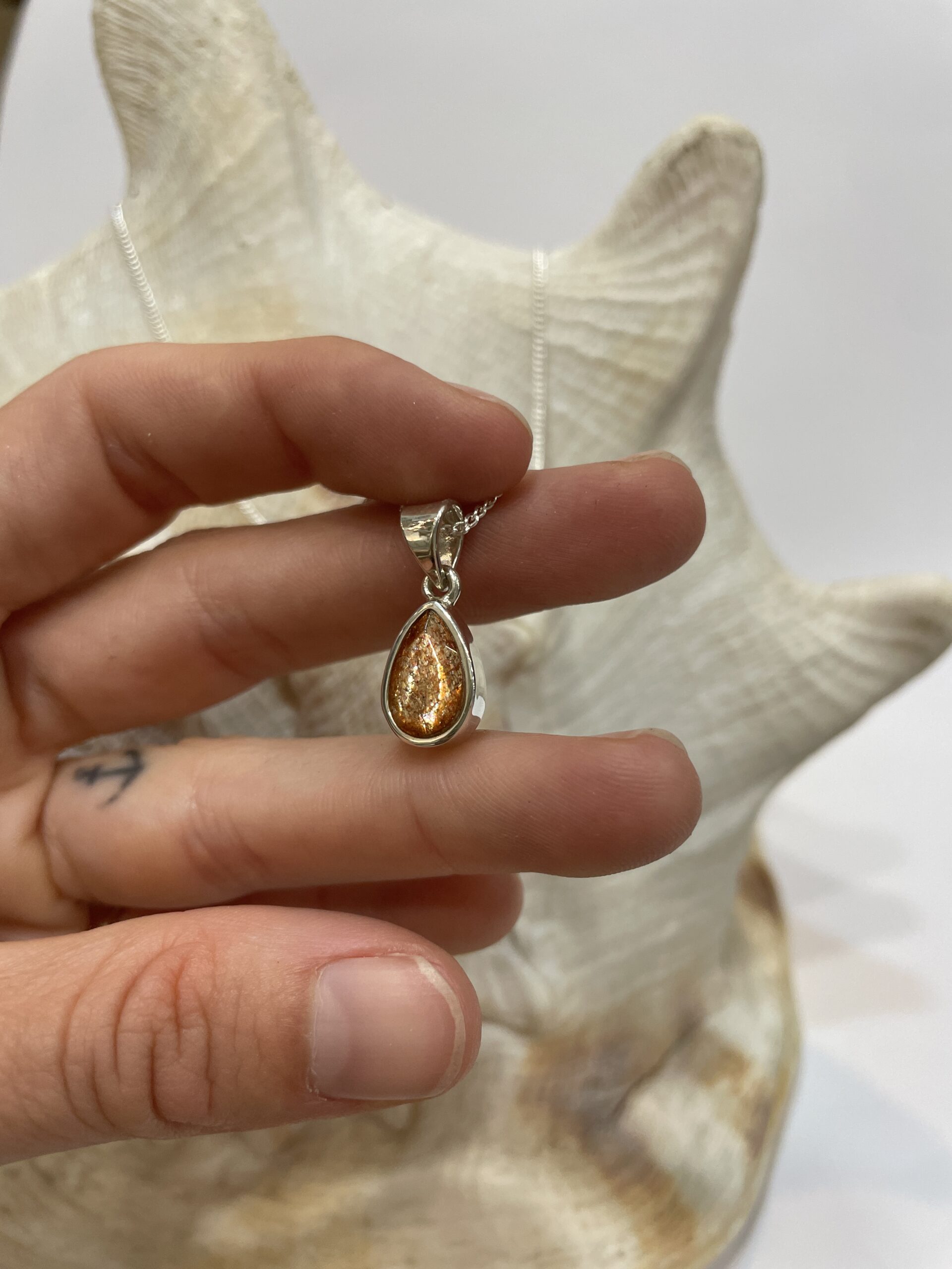 Colgante de piedra sol o cuarzo sol natural engastado en Plata de Ley 925.