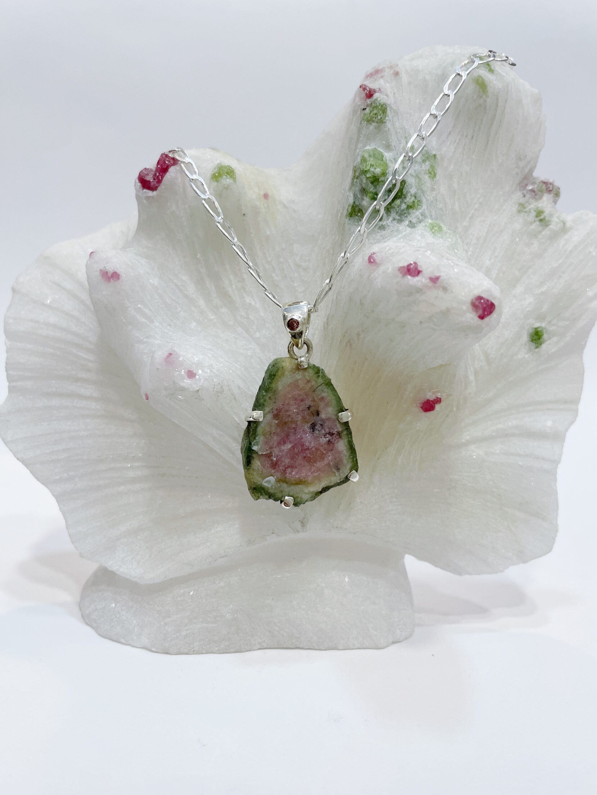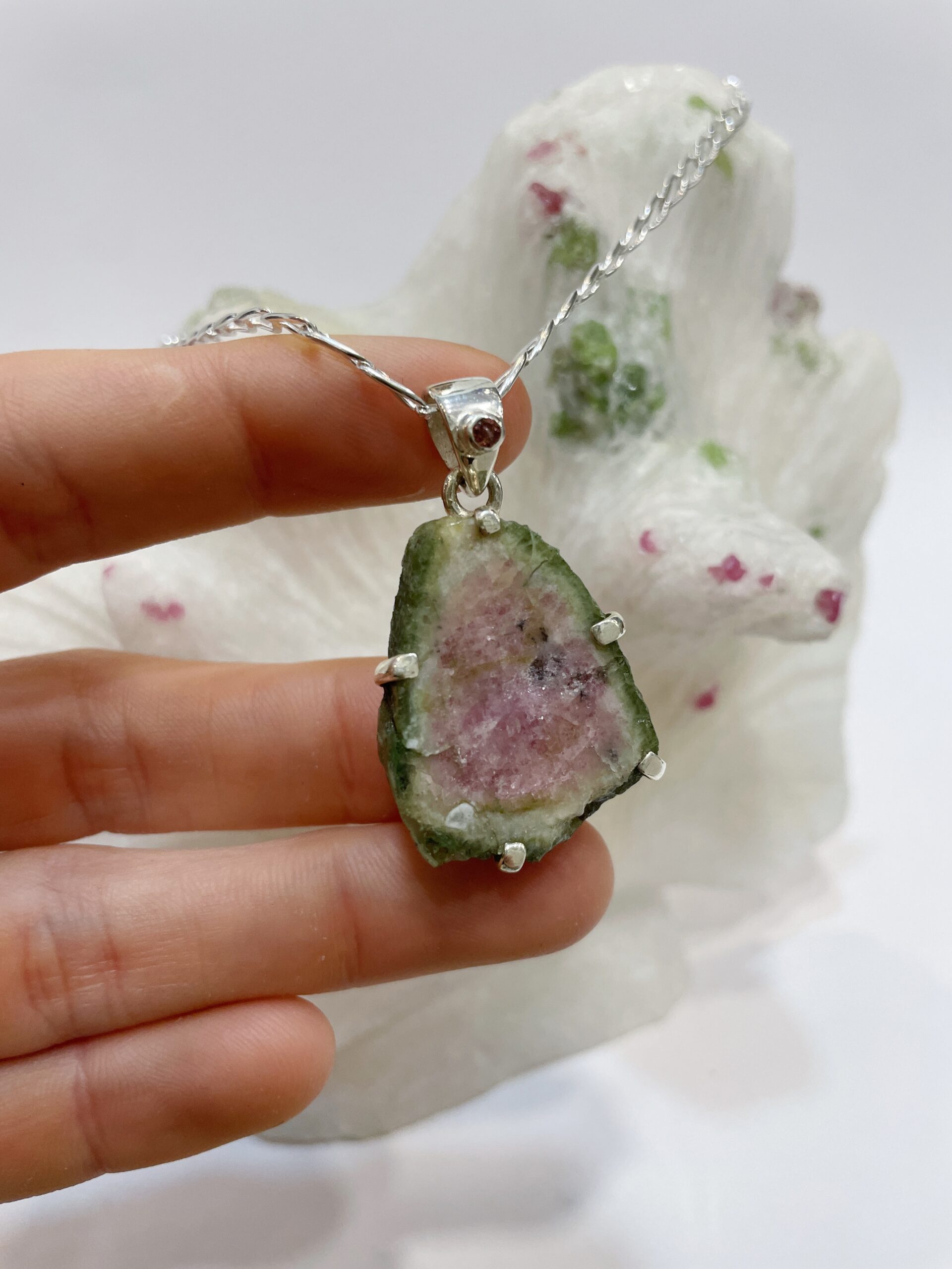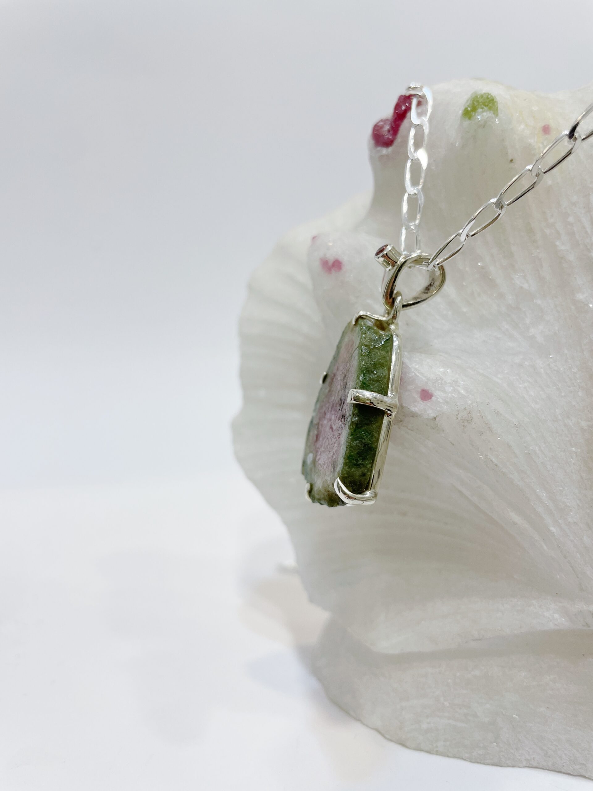 Colgante de turmalina sandía semibruto engastado en plata de ley 925.