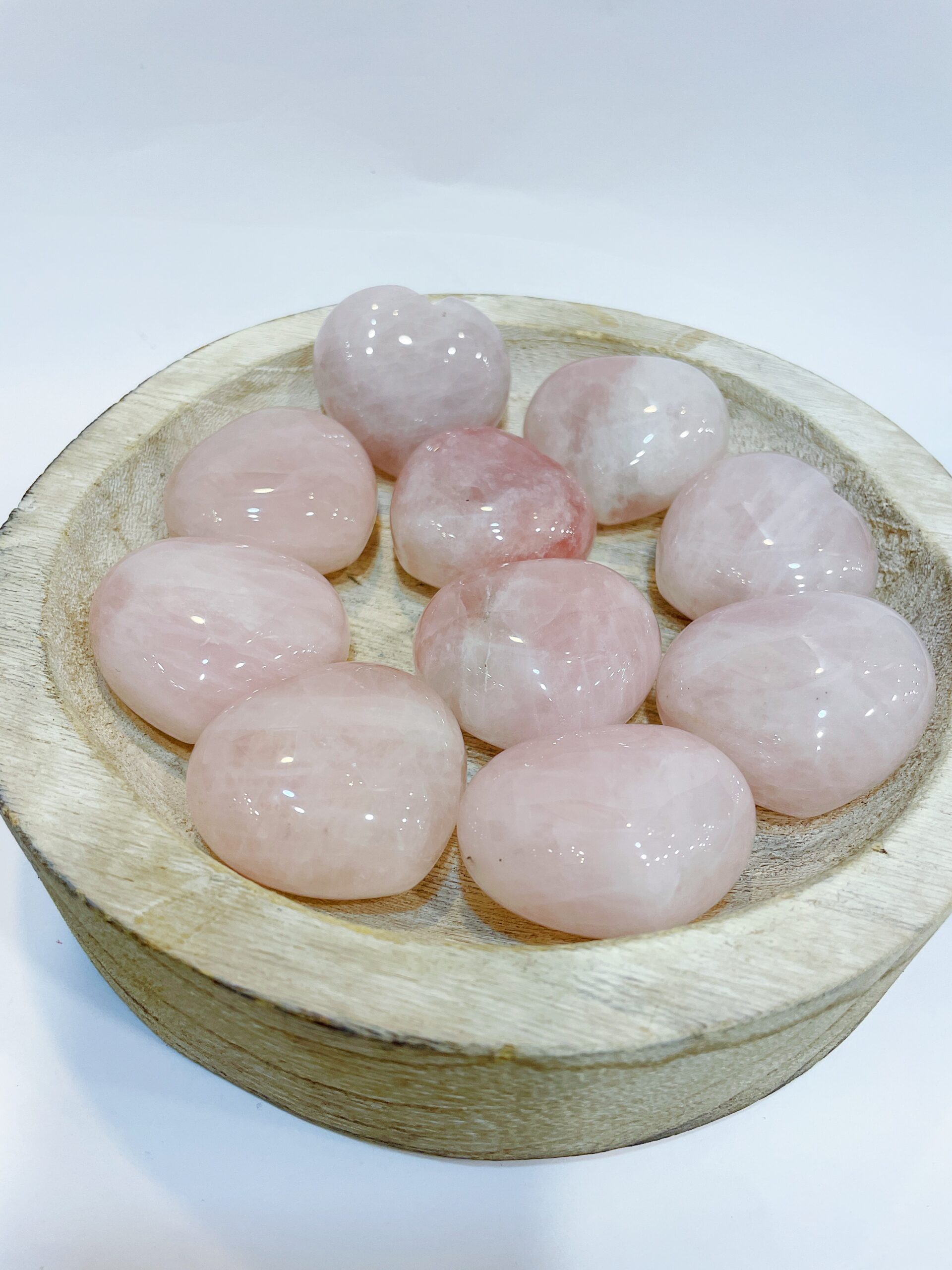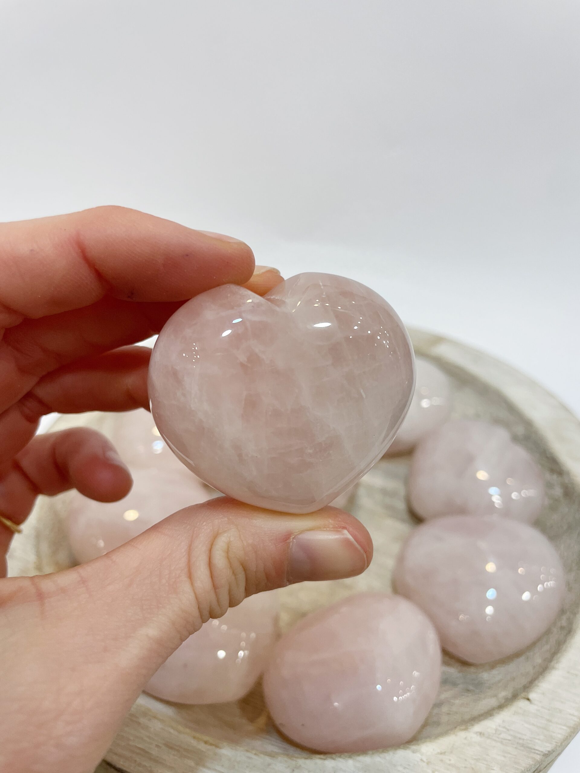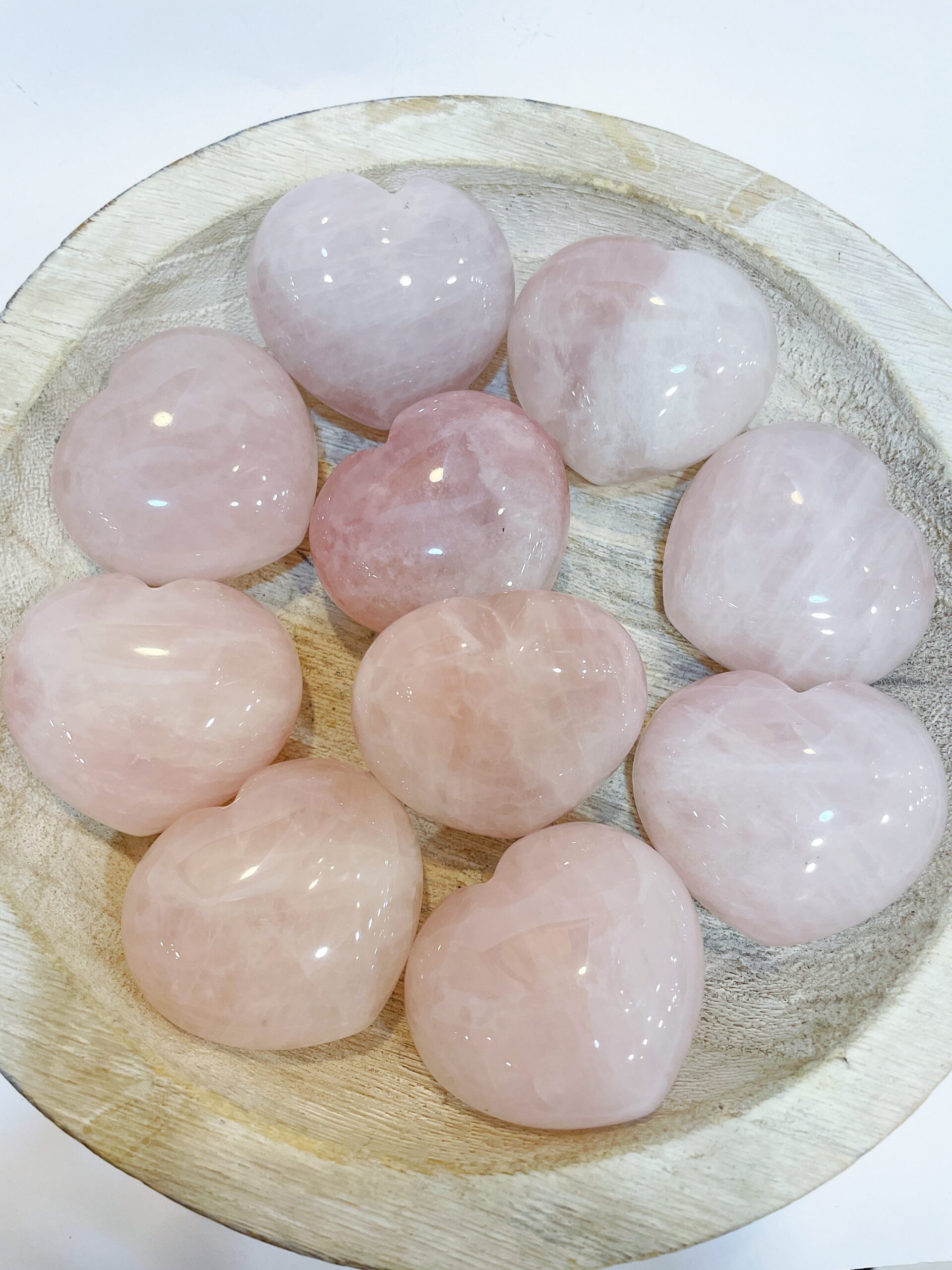 Cuarzo rosa natural pulido y tallado en forma de corazón. Procedente de Brasil.