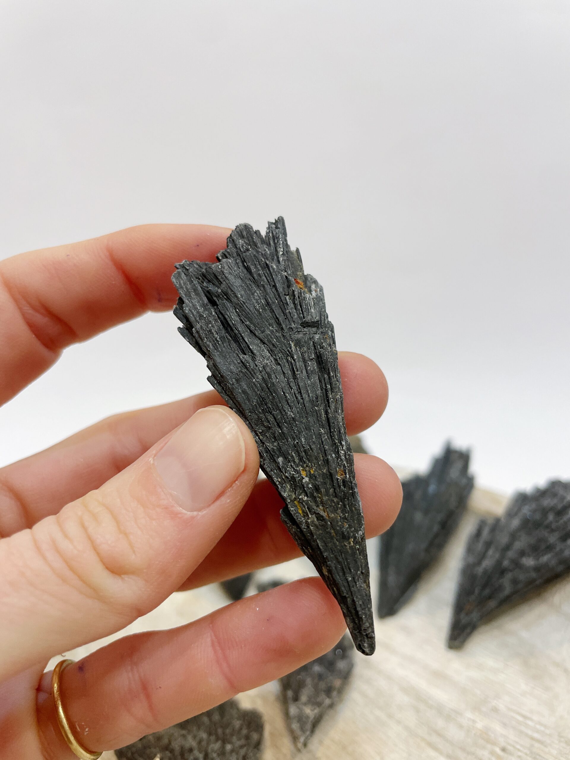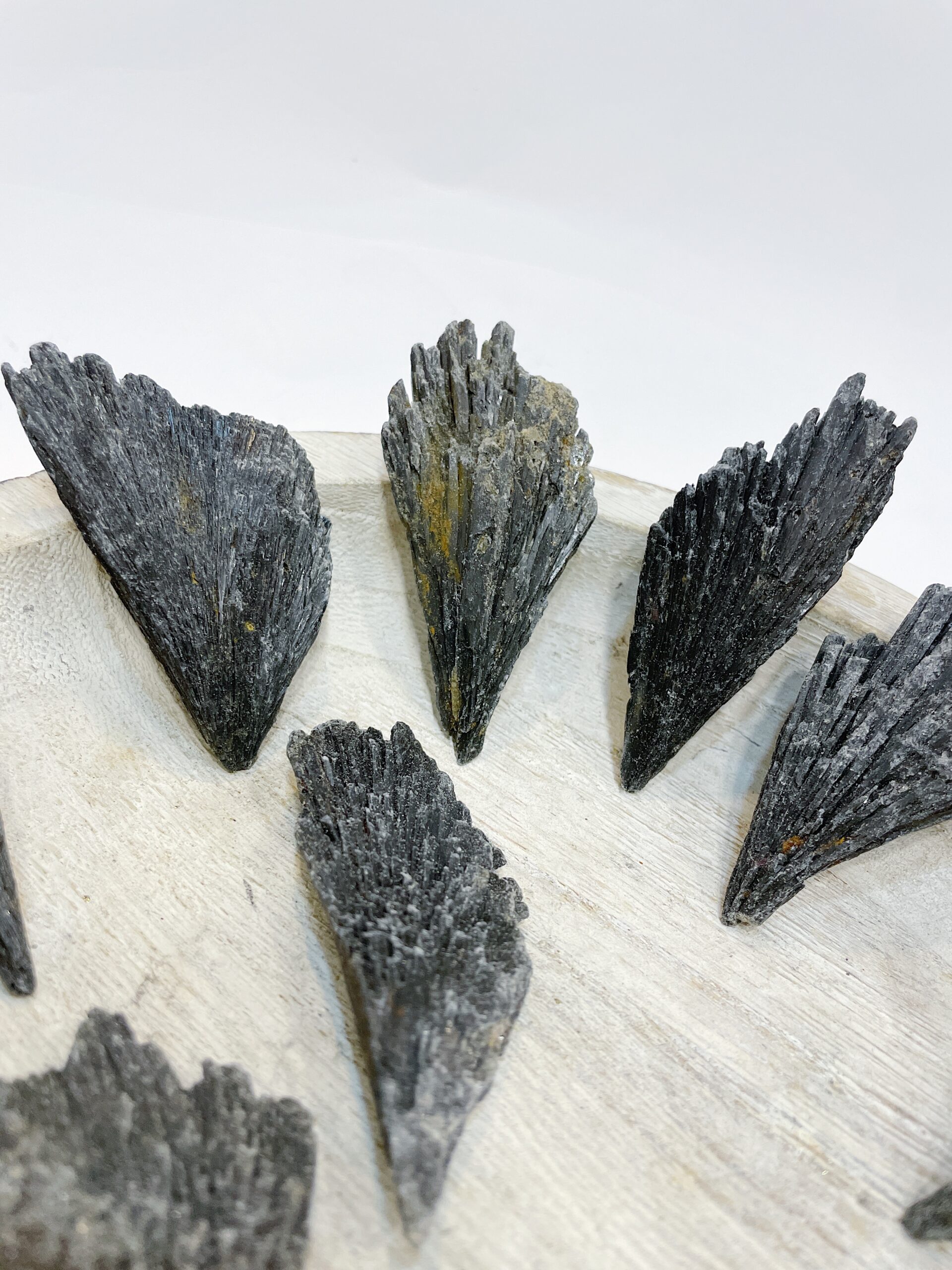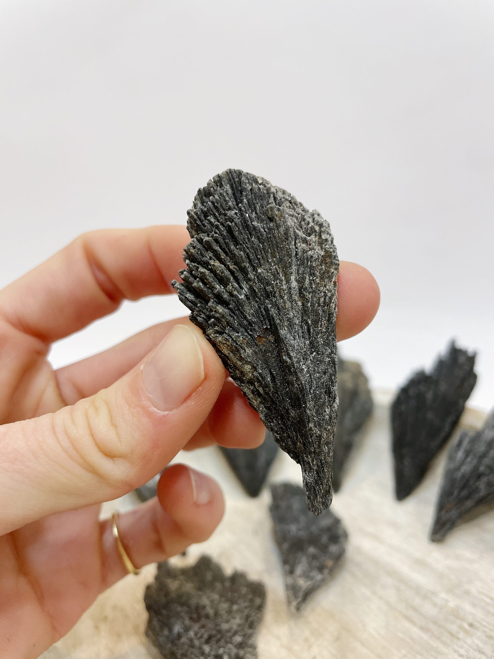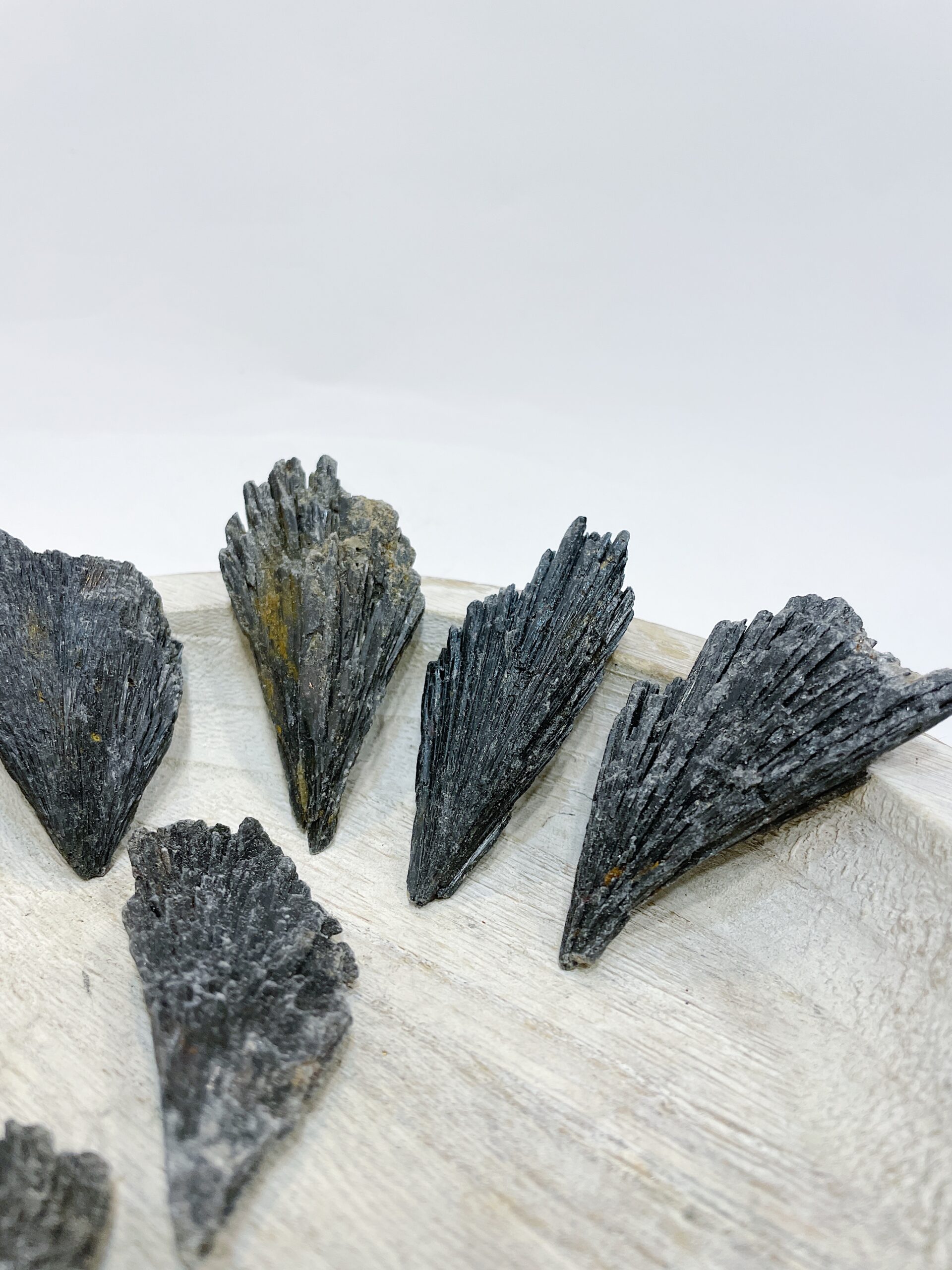 Cianita negra o “escoba de bruja” natural en bruto procedente de Brasil.