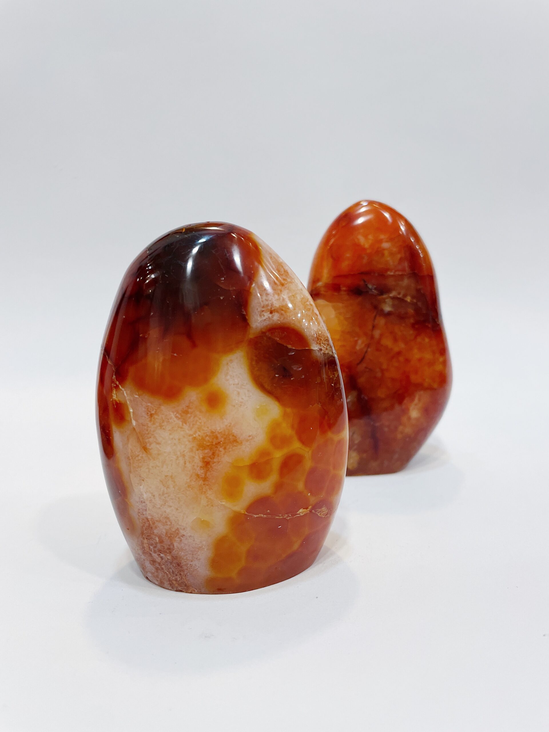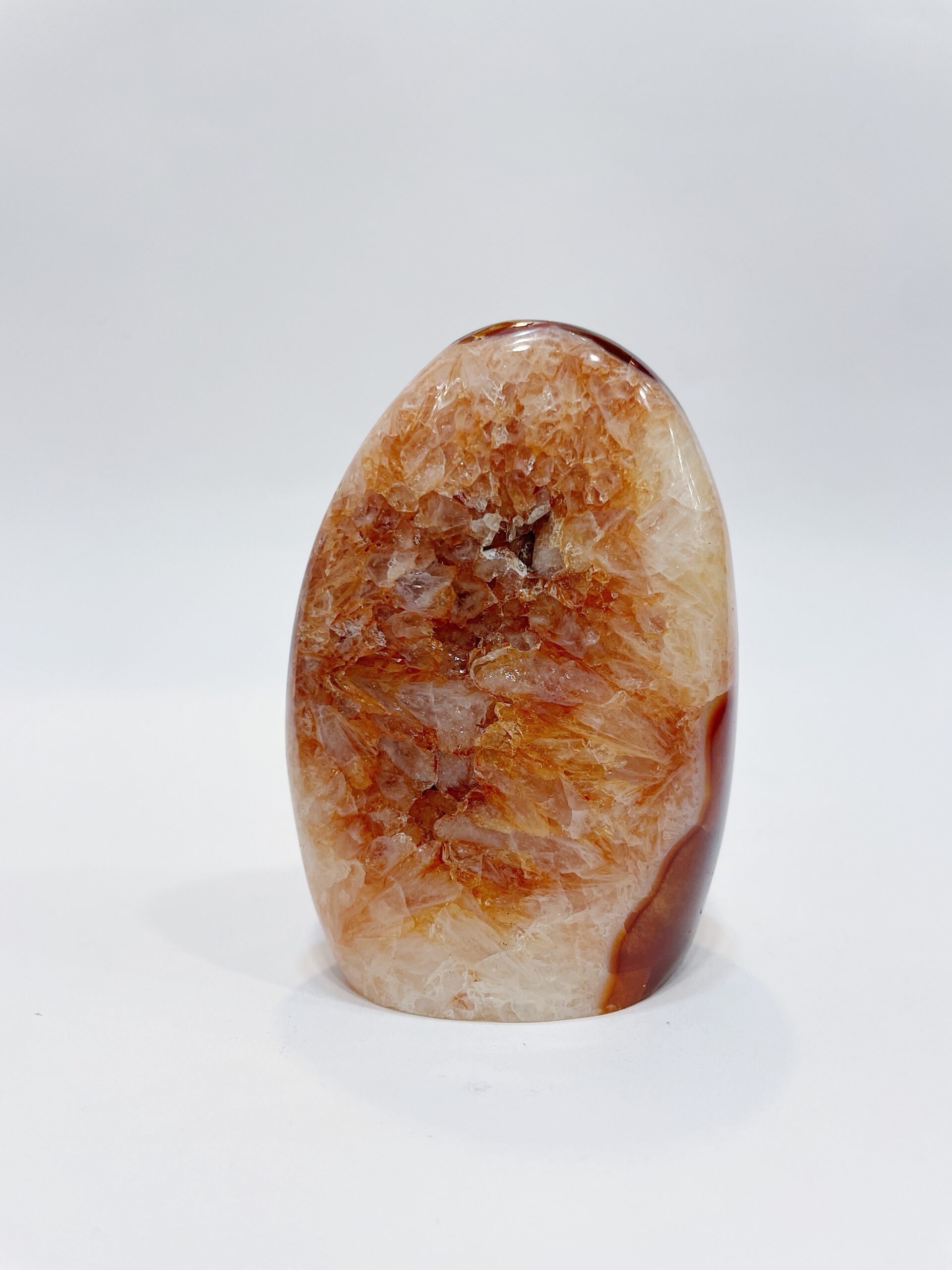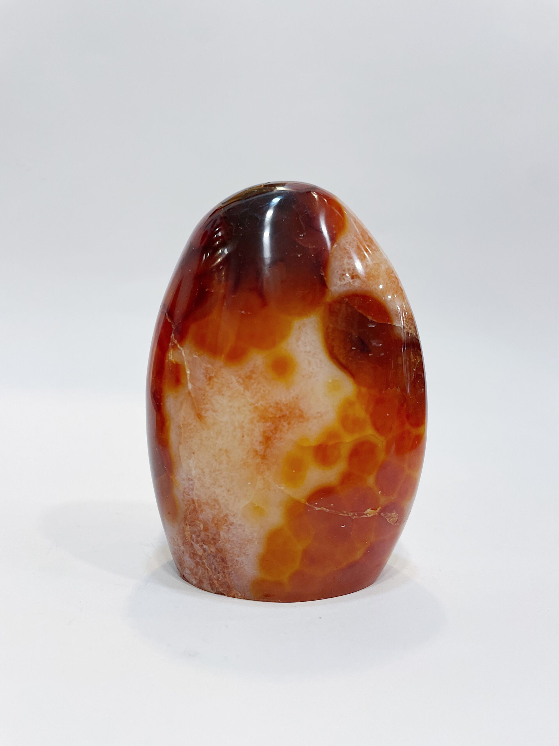 Ágata cornalina o carneola pulida con base plana procedente de Brasil.