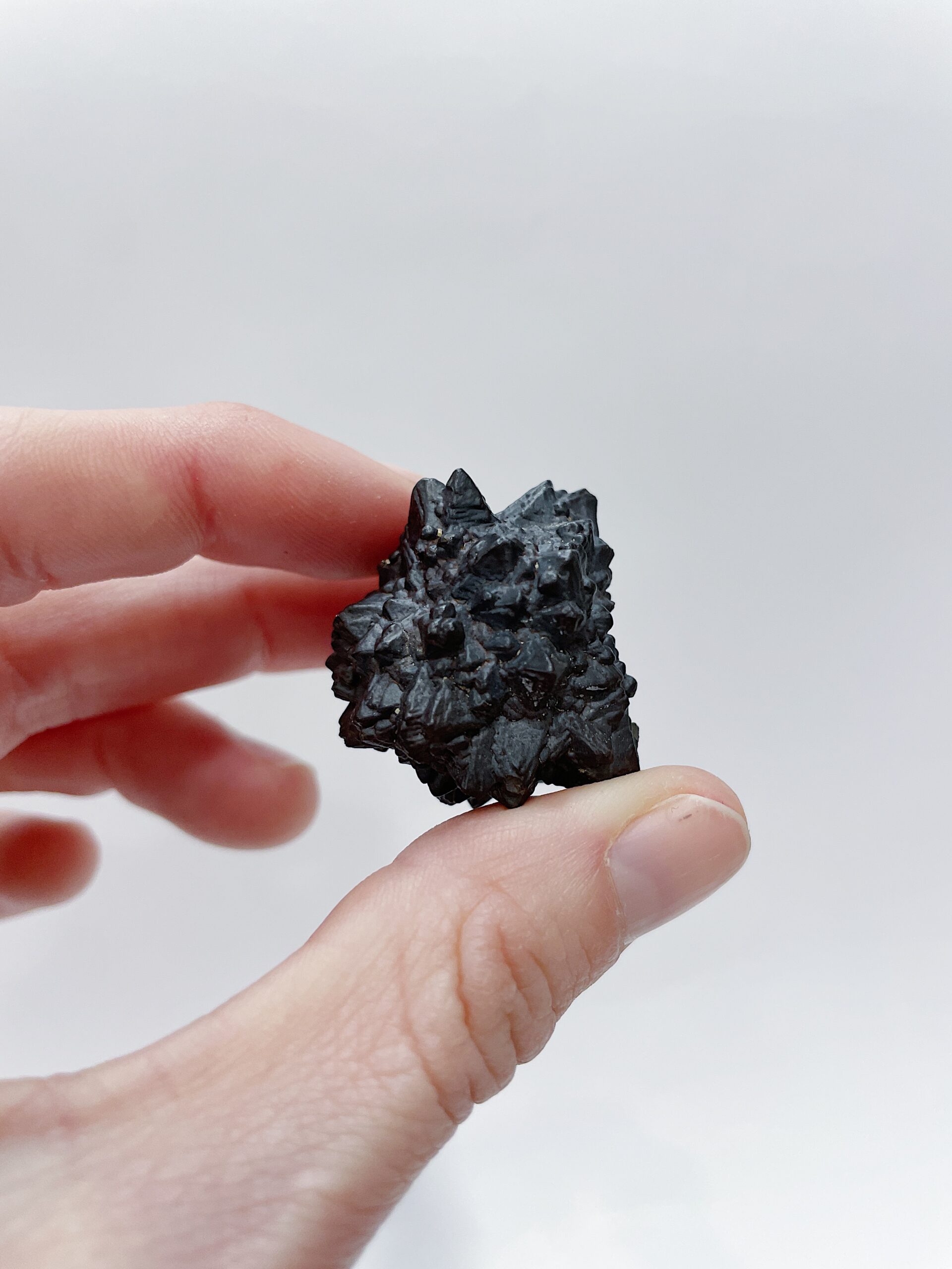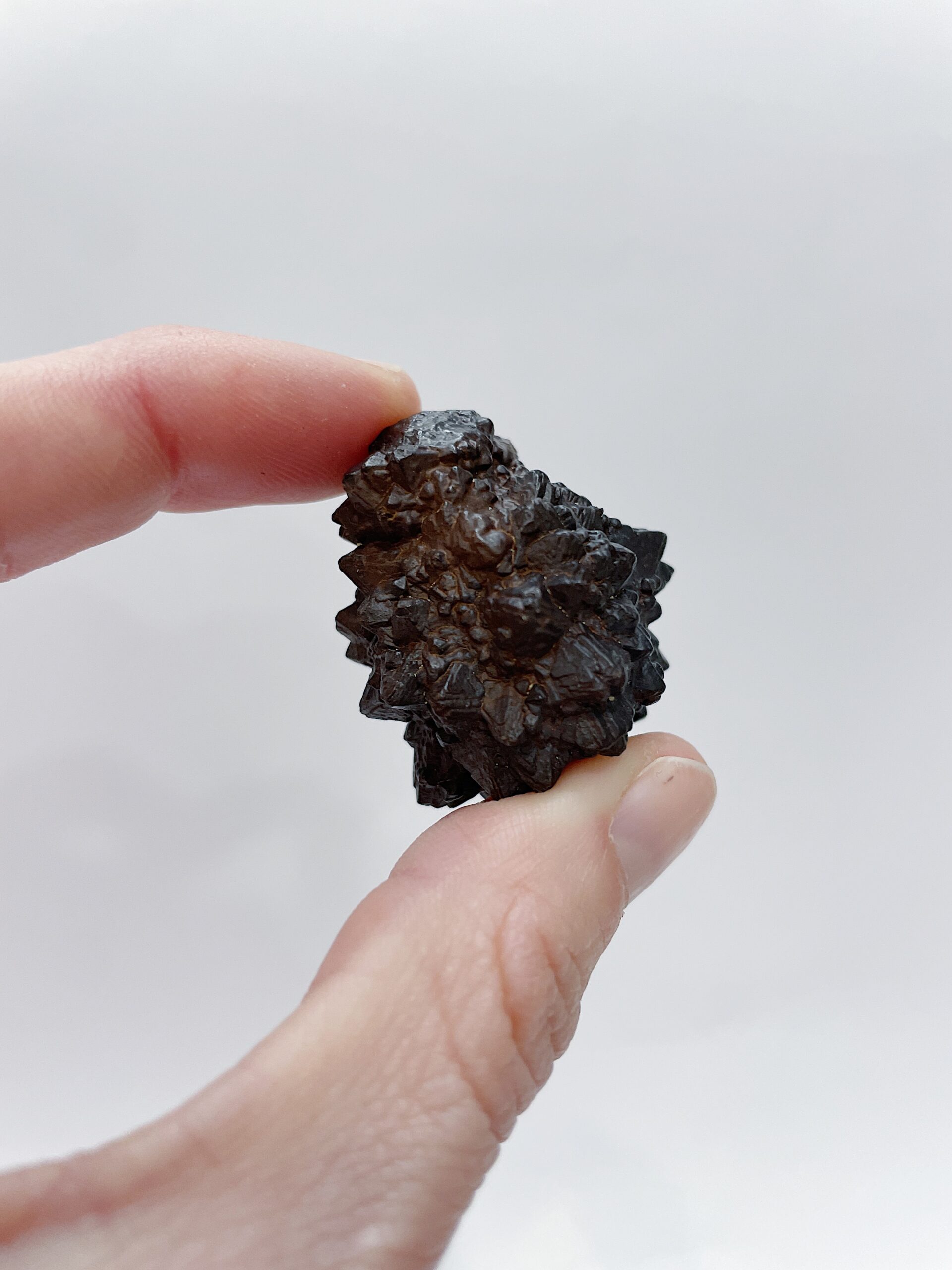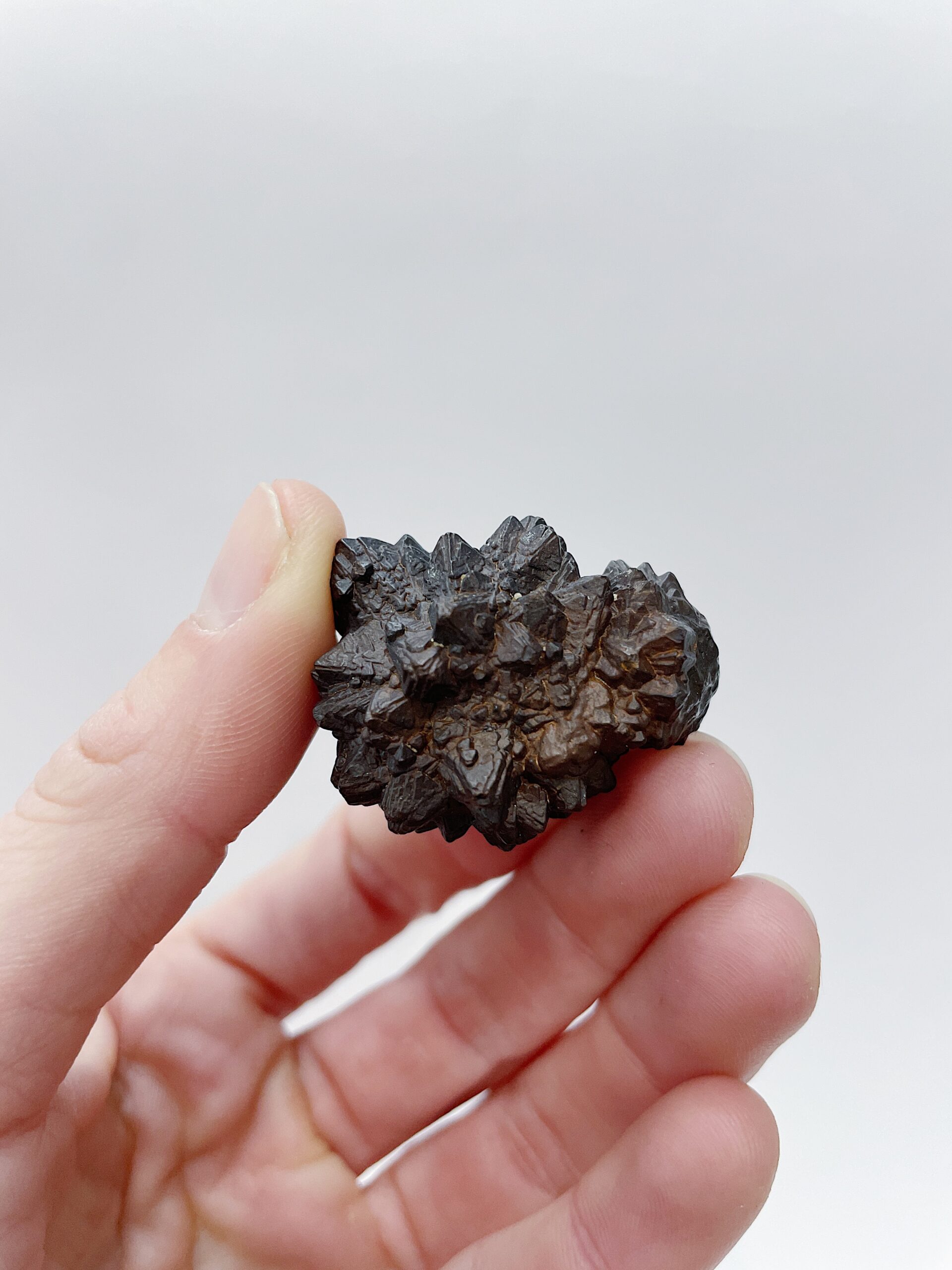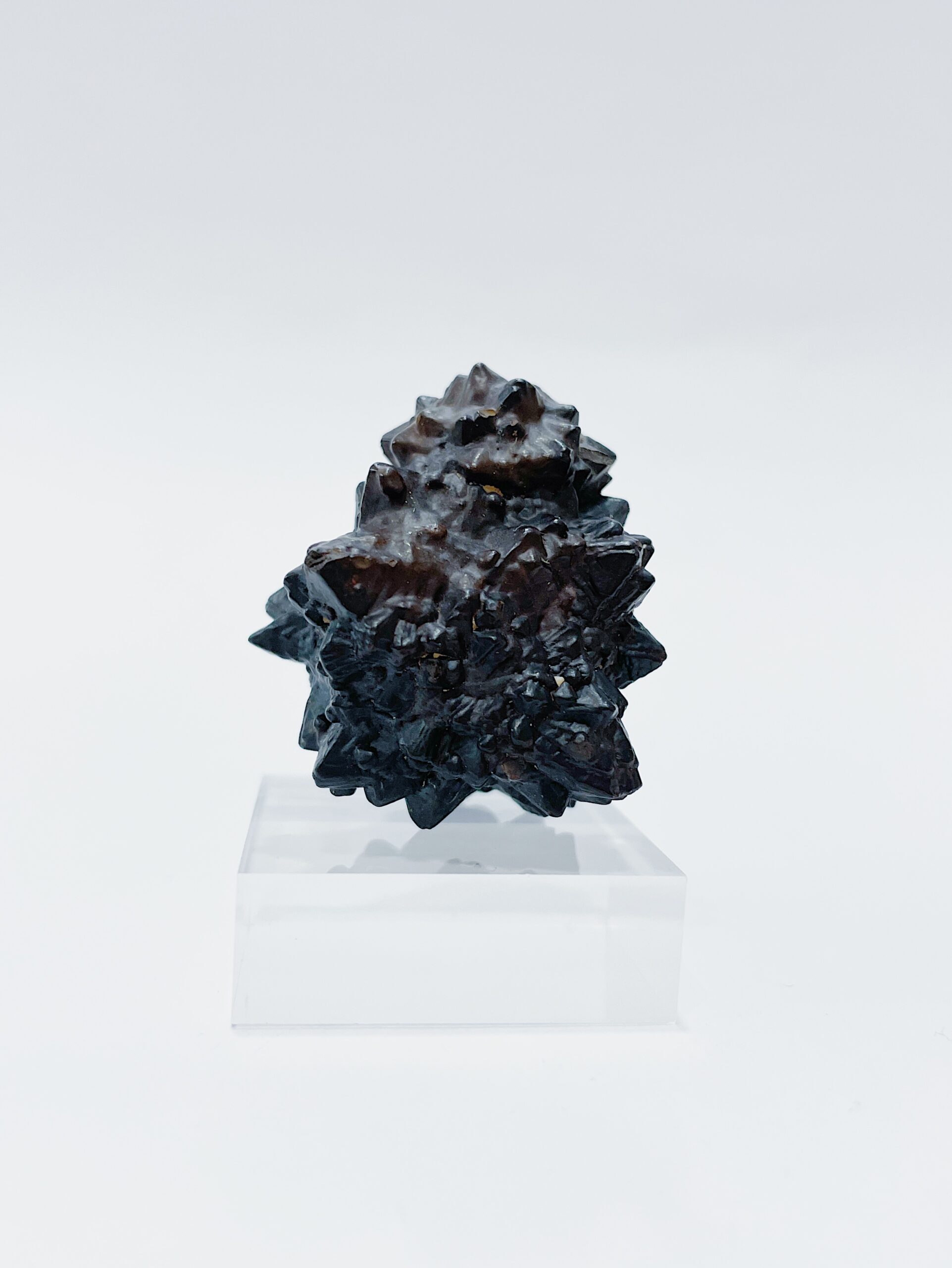 Es una Goethita pseudomórfica en marcasita, llamada comercialmente “Prohecy stone” en inglés y en español “Piedra profecía”. La pseudomorfosis es cuando un mineral se transforma en otro de manera natural en el propio yacimiento, conservando la estructura del mineral original. En este caso la marcasita se ha convertido en goethita.