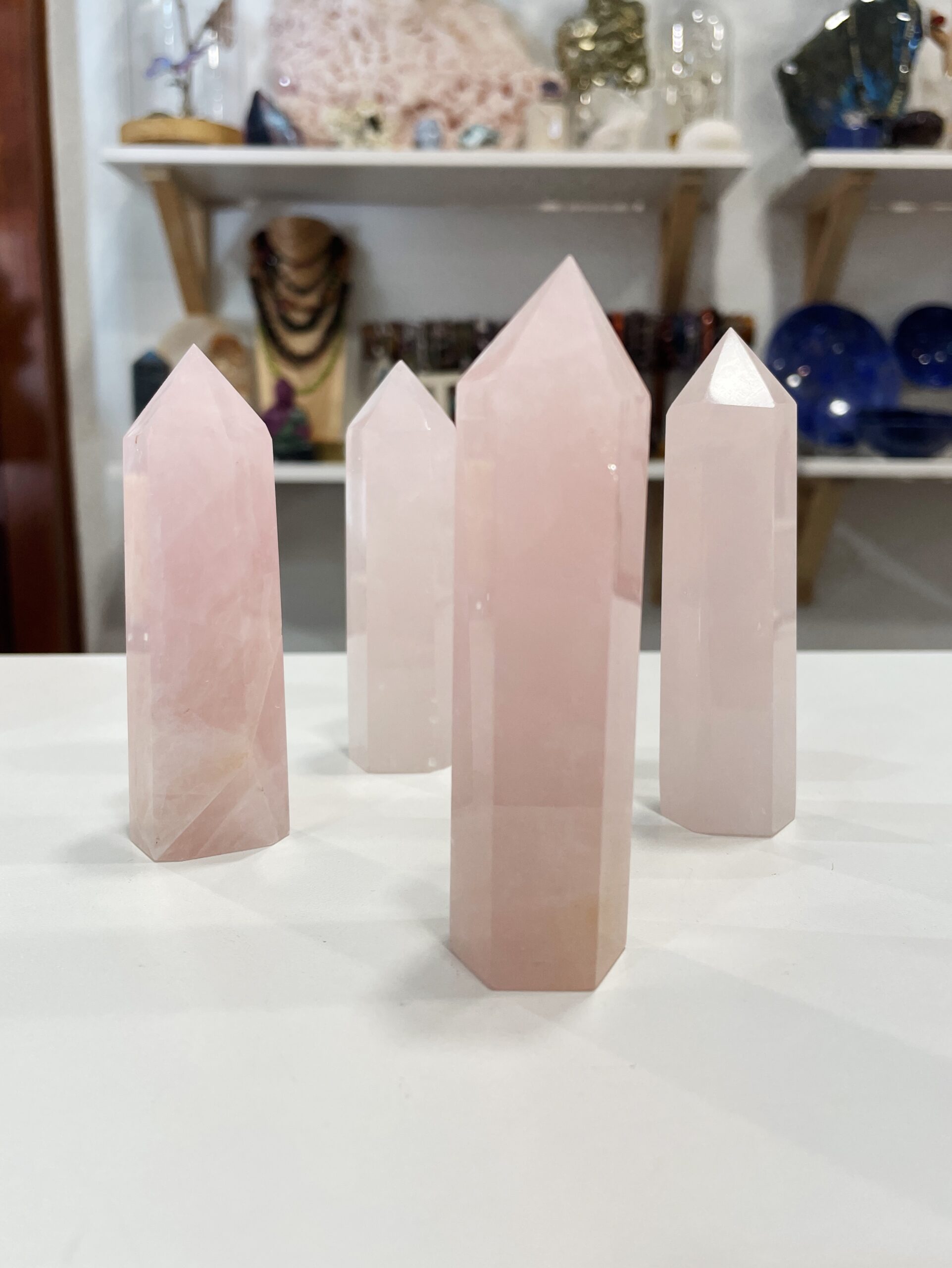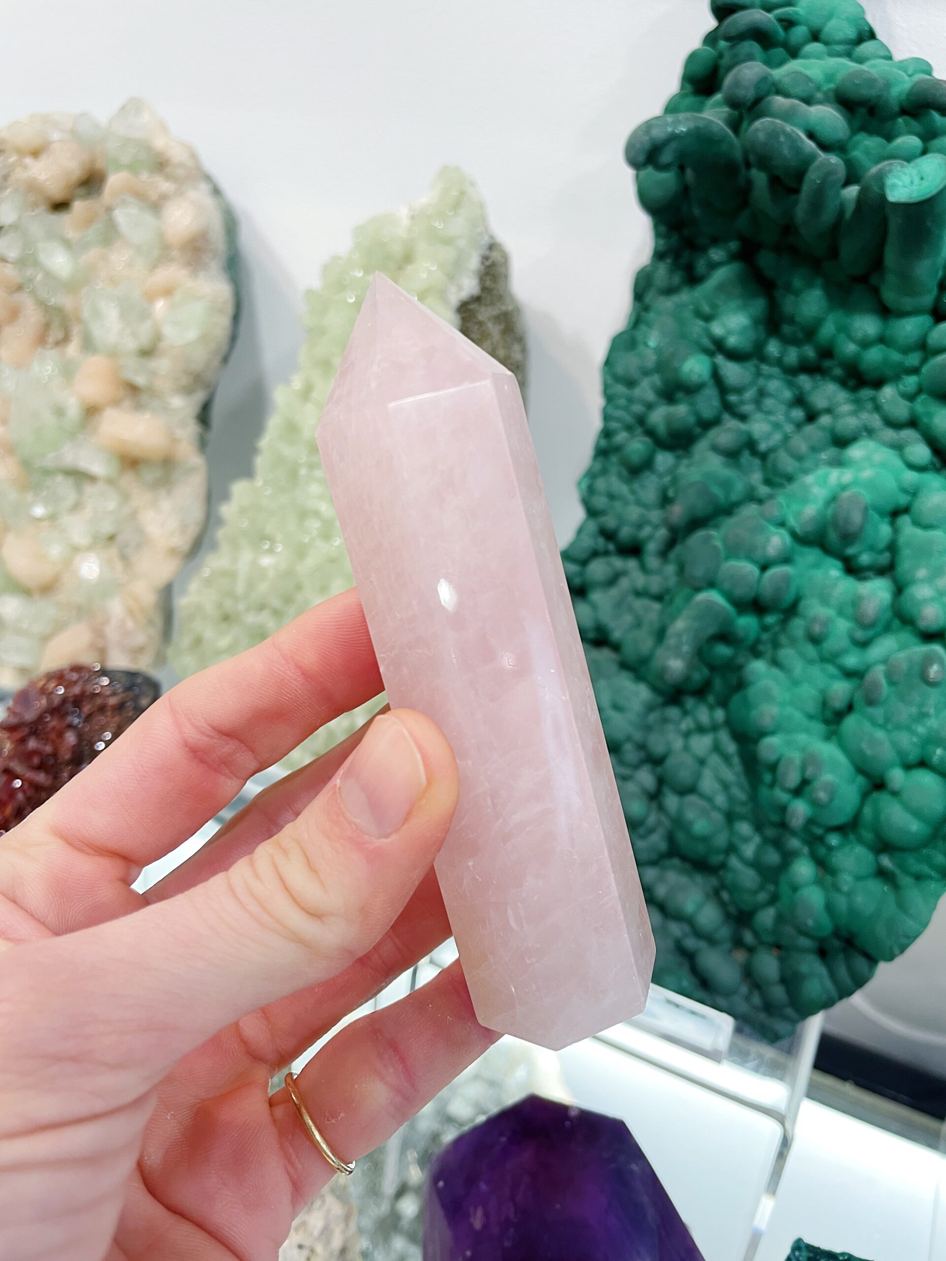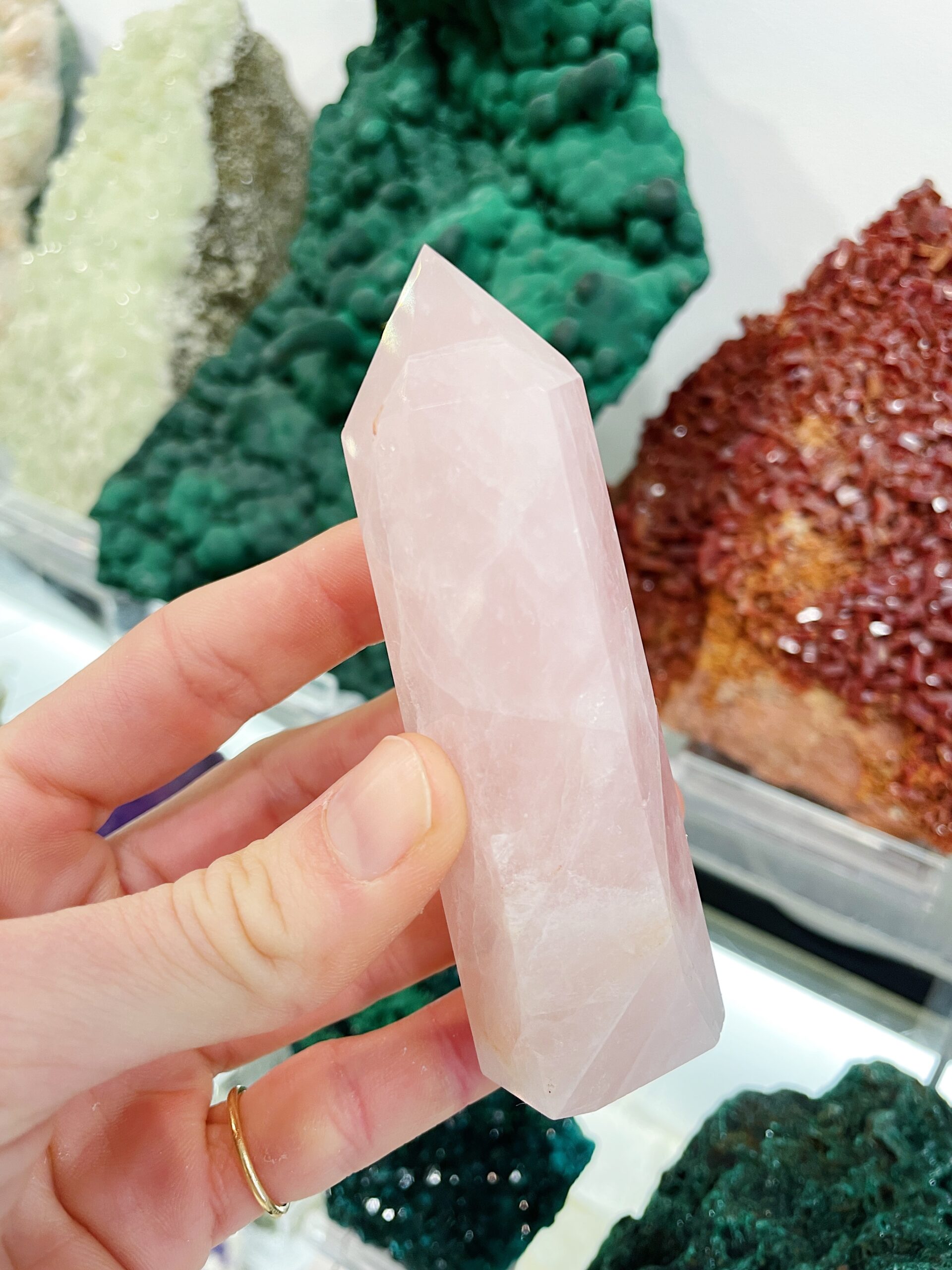Punta de Cuarzo Rosa pulida procedente de Madagascar.