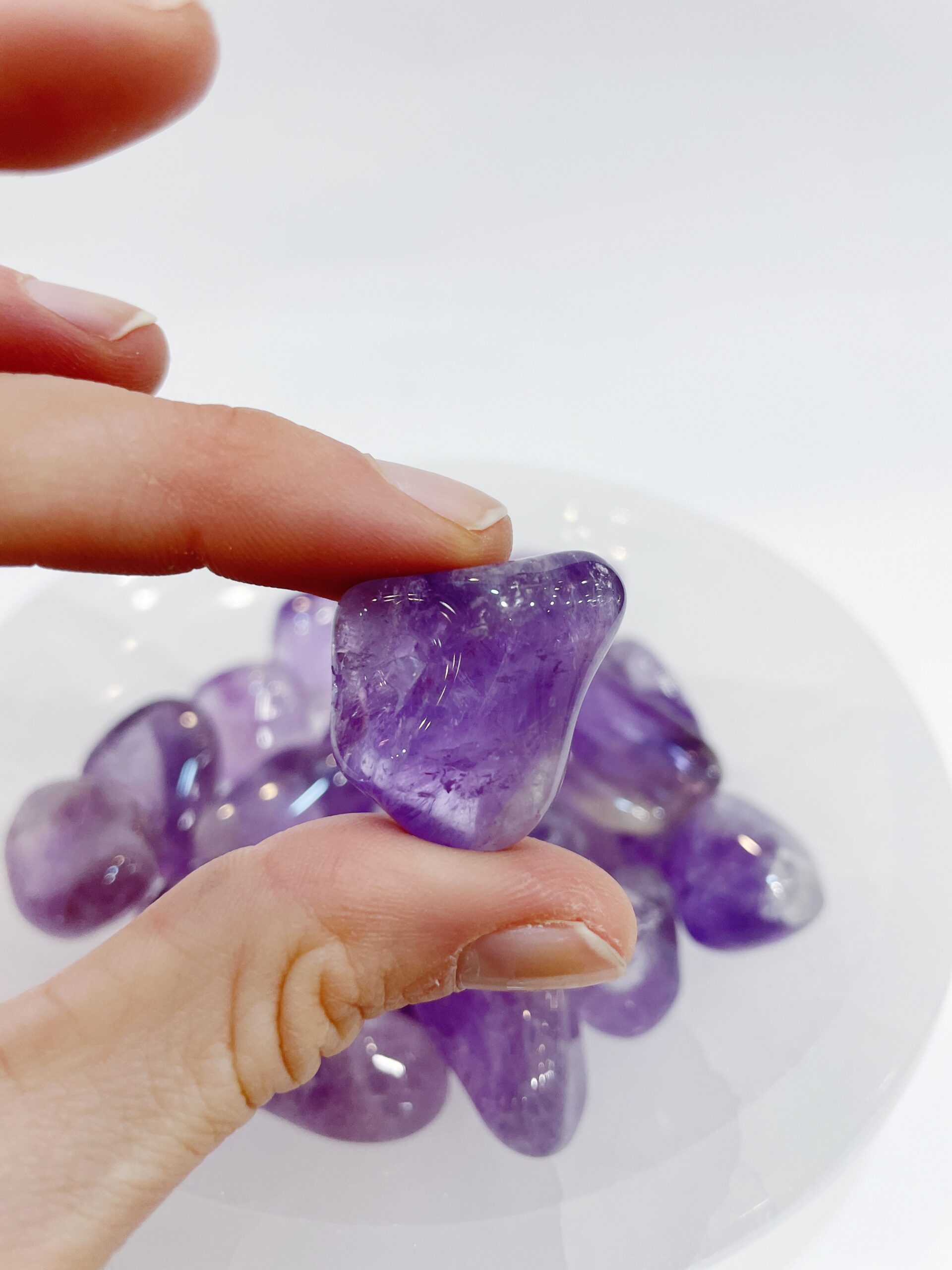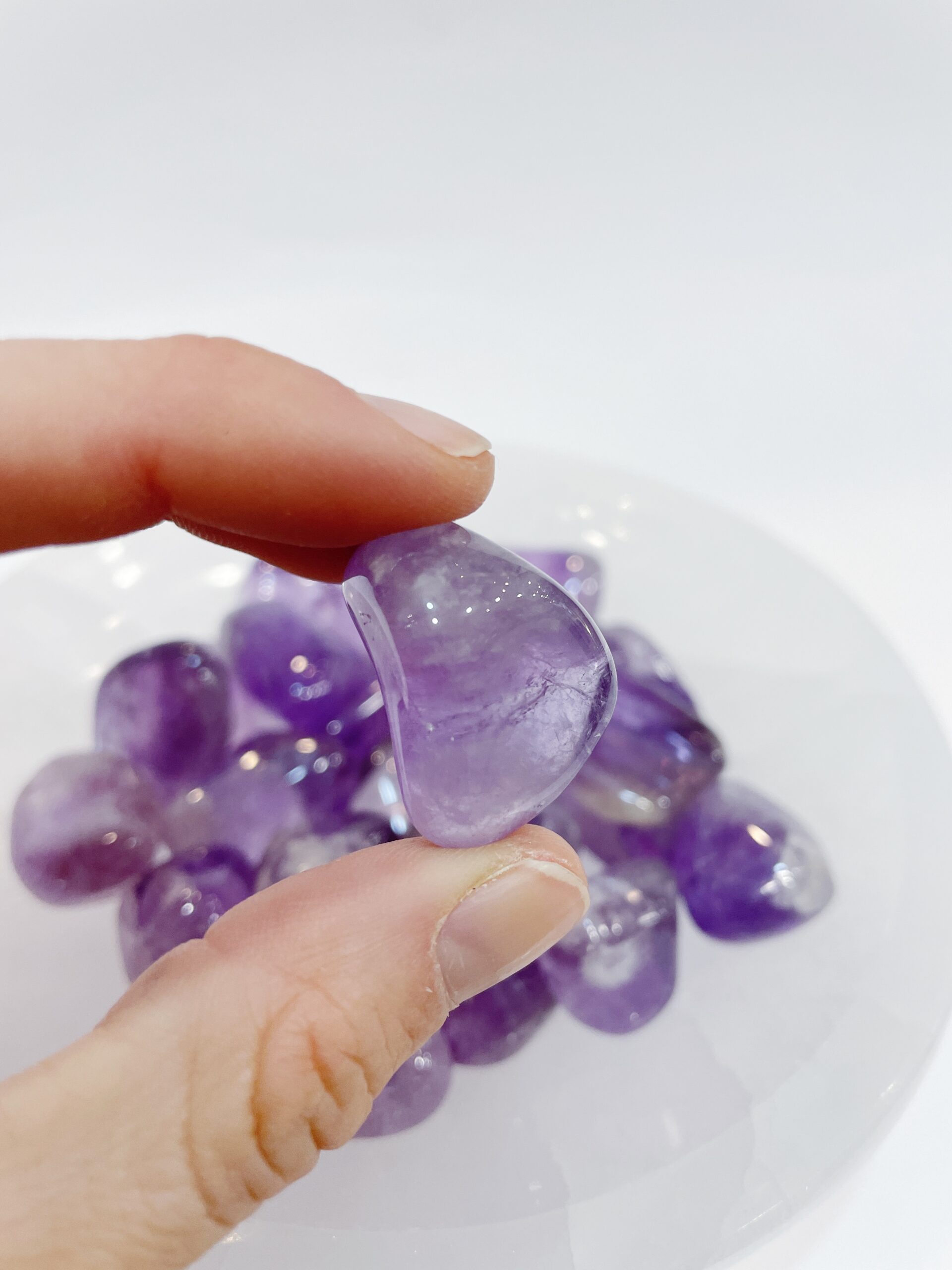 Rodados de Amatista natural pulida procedente de Brasil. Medida: de 2,5 a 3cm dependiendo de la pieza